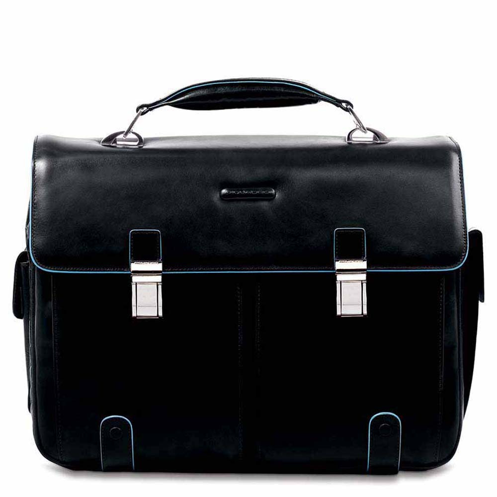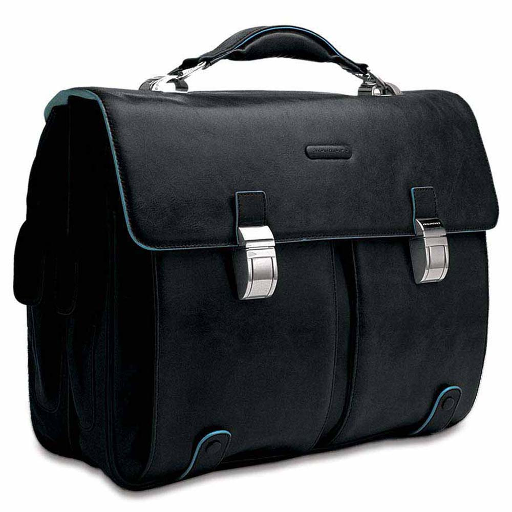 PIQUADRO CARTELLA PELLE CA1068B2 DUE TASCHE E DUE CHIUSURE NERO
