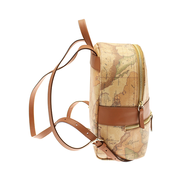 Zainetto in tessuto stampato con cartina geografica Geo Classic, con tasca frontale, logo lettering 1A Classe in metallo dorato, spallacci regolabili, chiusura con zip. Dotato di molteplici spazi interni.