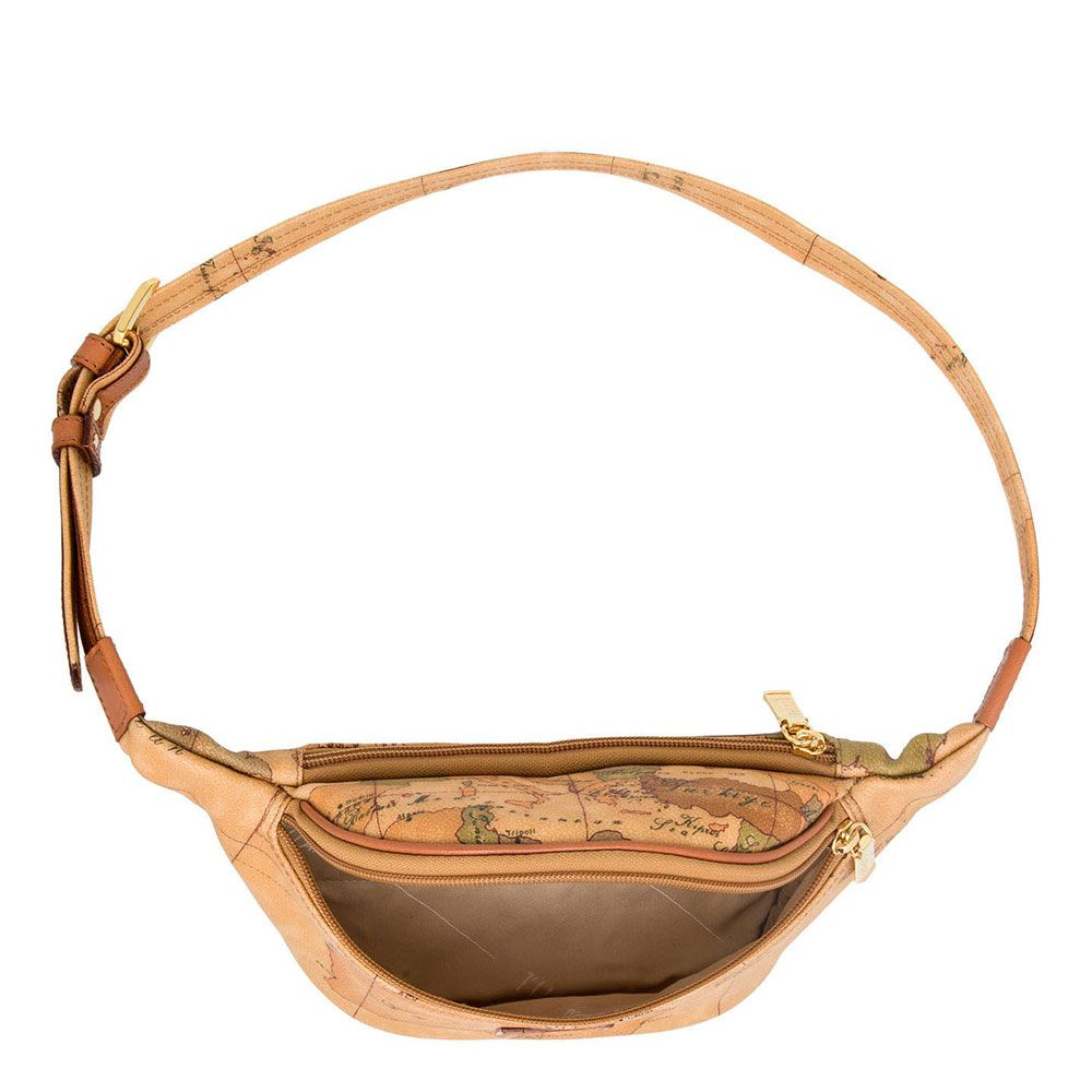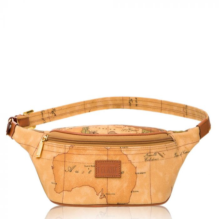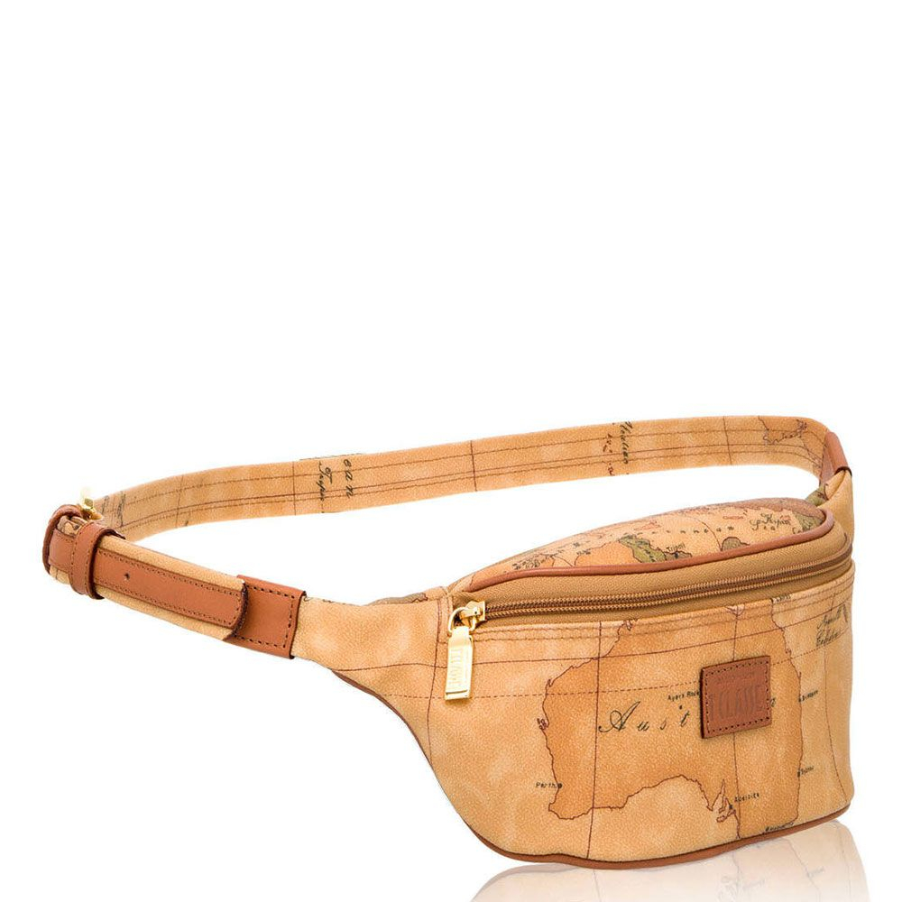 Marsupio in tessuto stampato con cartina geografica Geo Classic, con cintura regolabile, chiusura con zip, targhetta con logo 1AClasse. L'accessorio ideale per completare un outfit casual.