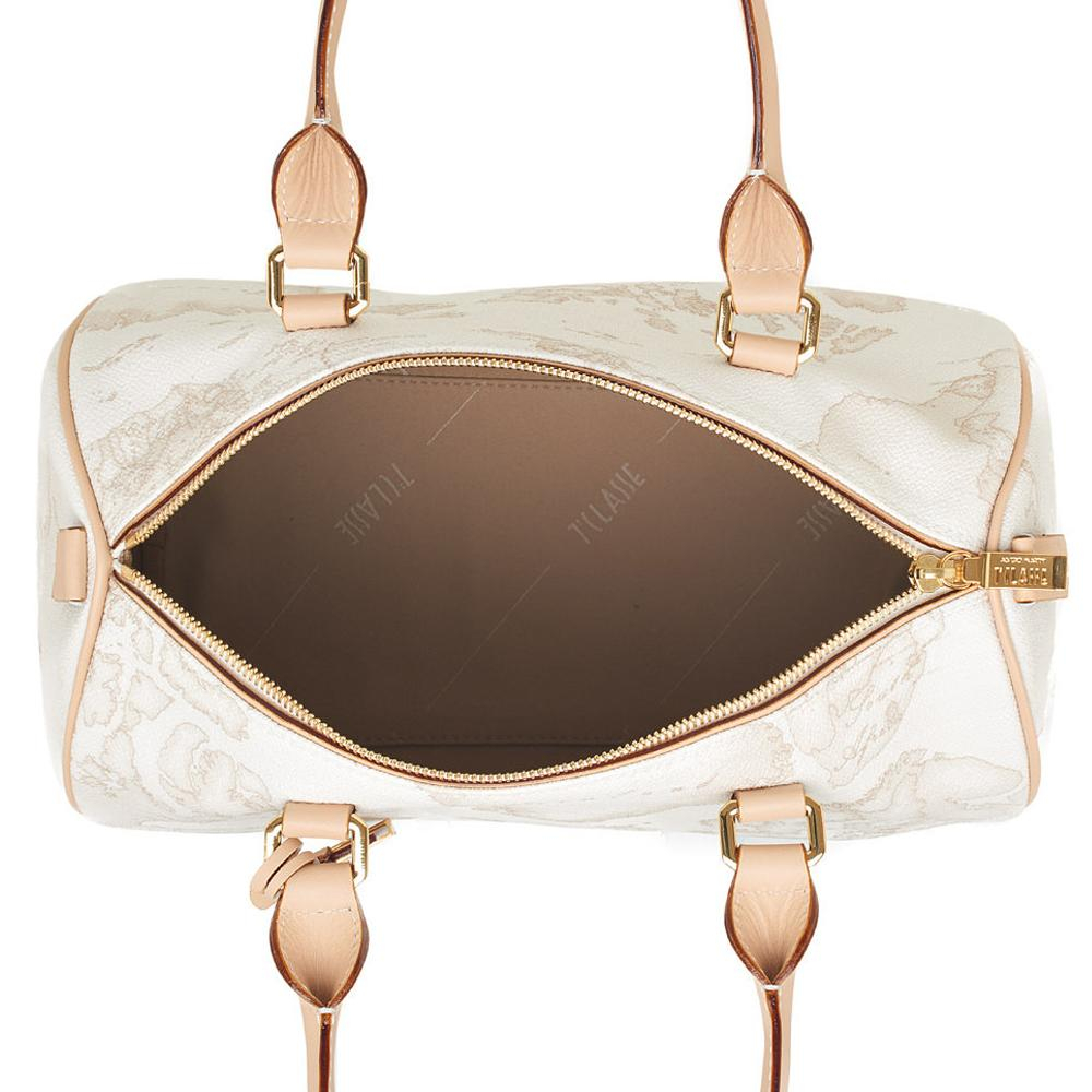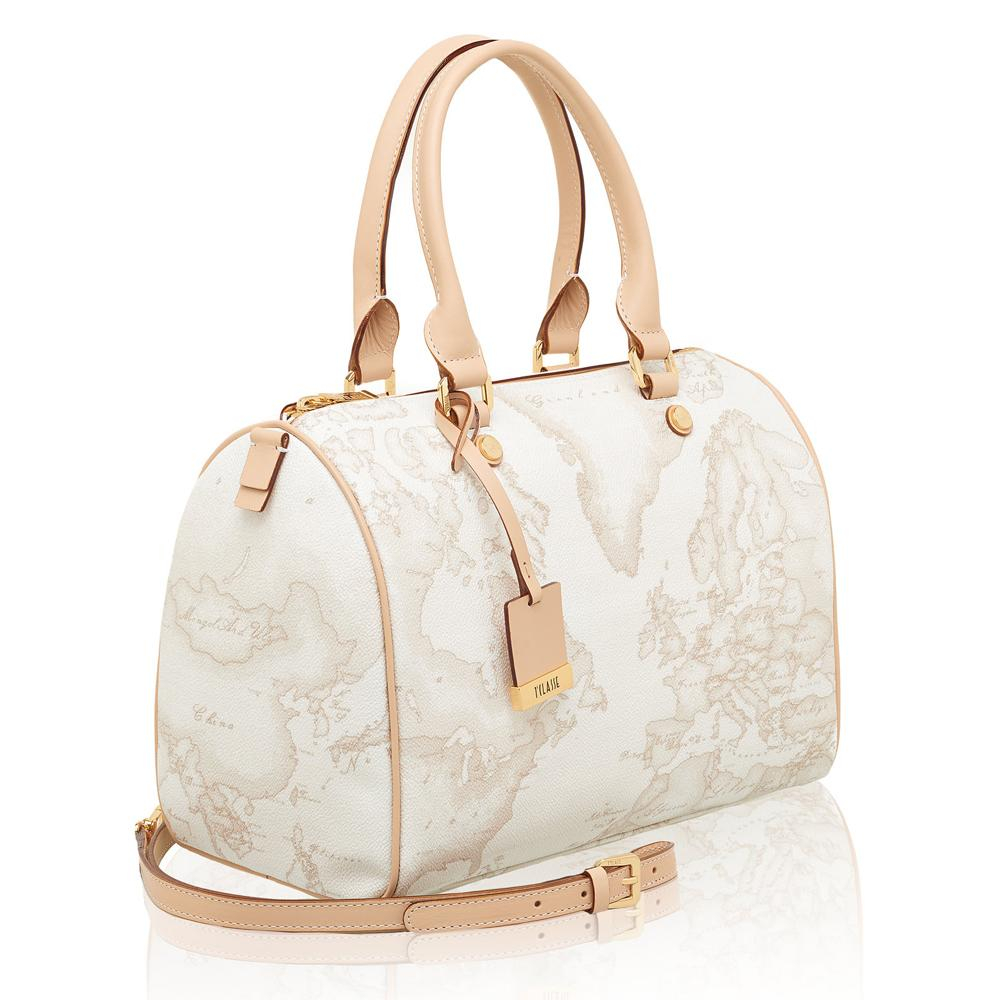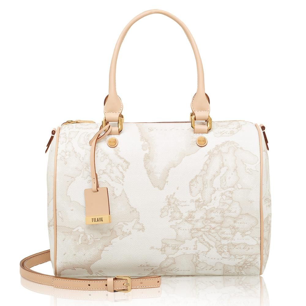 Bauletto donna realizzato in tessuto stampa Geo Classic con finiture in vera pelle. Bauletto dalla doppia portabilità, a mano grazie ai manici arrotondati e a spalla con la tracolla regolabile. Ha la chiusura con zip ed è disponibile in due misure. I dettagli accurati e le rifiniture preziose sottolineano la sua realizzazione Made in Italy.