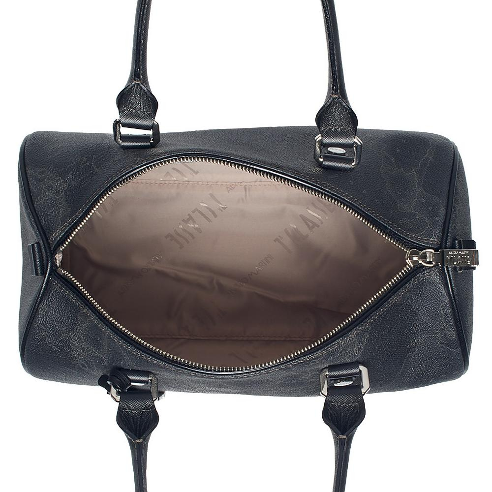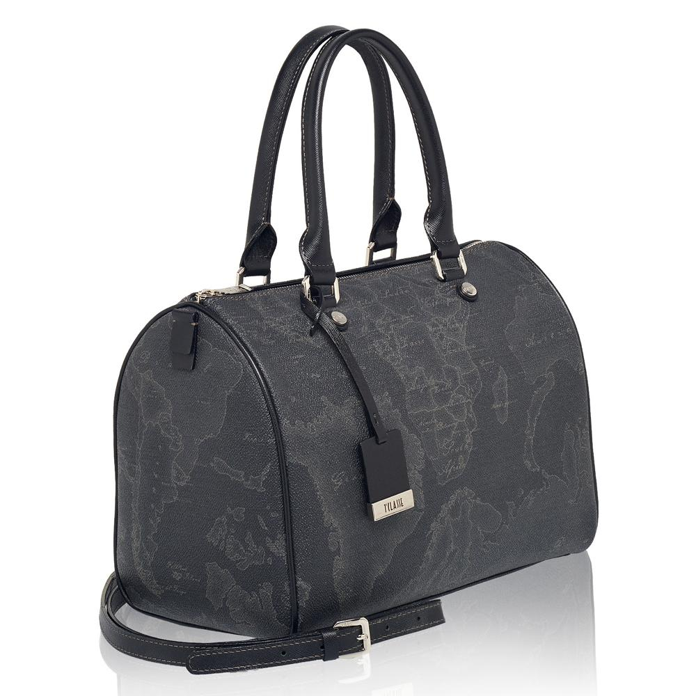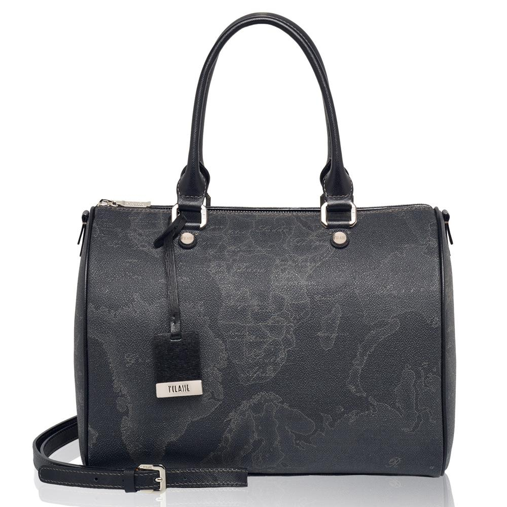 - Borsa a bauletto medio in tessuto stampato con cartina geografica Geo Black