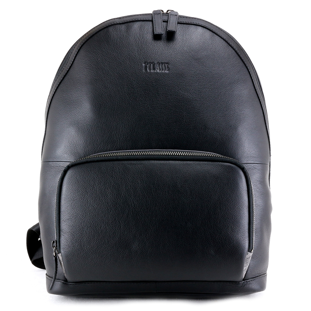 - Tasca frontale chiusa con zip e tiralampo in pelle