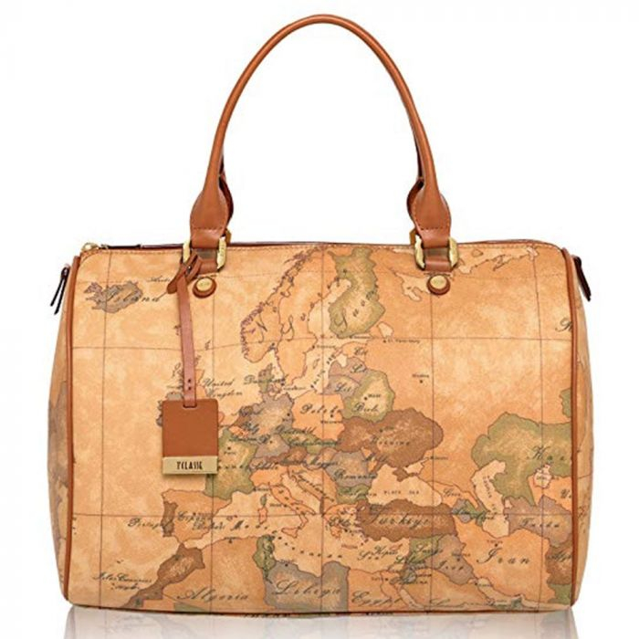- Borsa a bauletto in tessuto stampato con cartina geografica Geo Classic