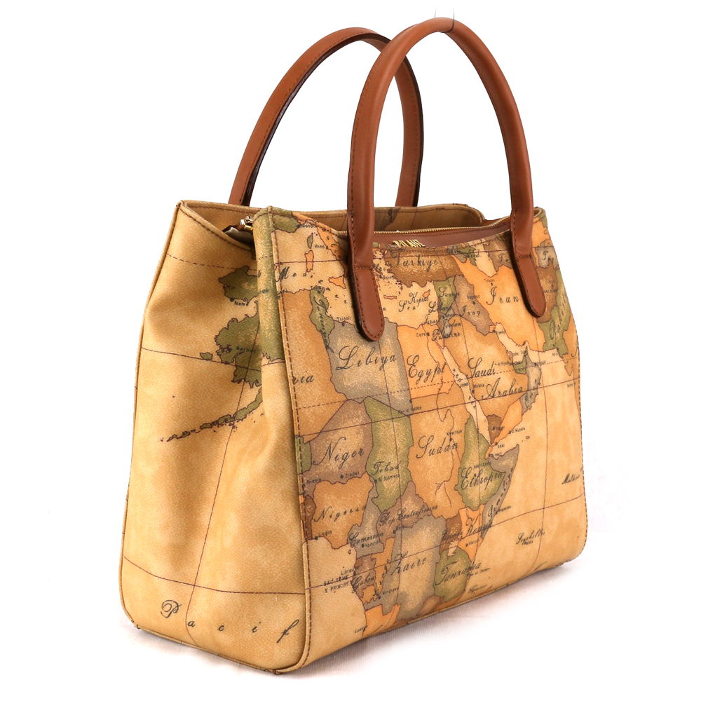 Borsa donna a mano realizzata in tessuto stampa Geo Classic con finiture in vera pelle. Borsa dalla doppia portabilità, a mano e a tracolla. Con logo lettering 1AClasse in metallo dorato, tre scomparti interni, tracolla removibile e chiusura con zip saprà conquistarti grazie alle dimensioni compatte e ai dettagli ricercati.