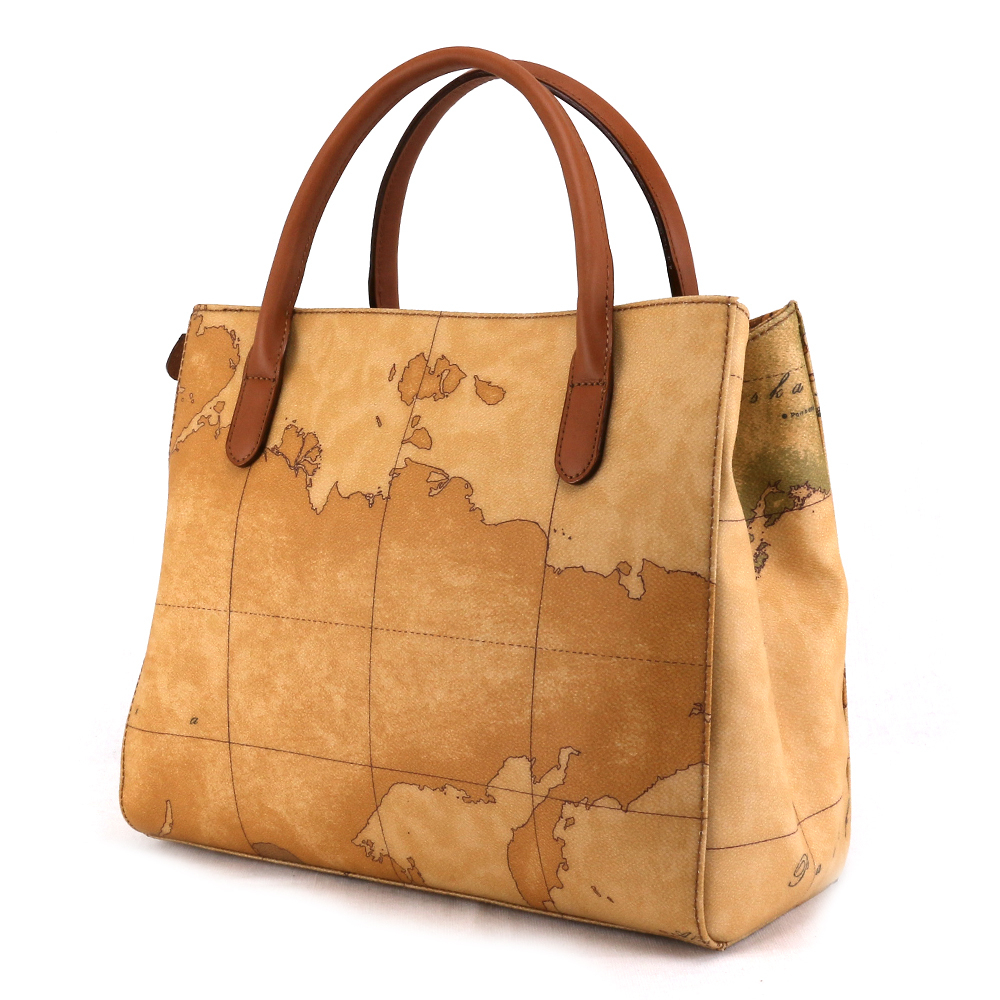 Borsa donna a mano realizzata in tessuto stampa Geo Classic con finiture in vera pelle. Borsa dalla doppia portabilità, a mano e a tracolla. Con logo lettering 1AClasse in metallo dorato, tre scomparti interni, tracolla removibile e chiusura con zip saprà conquistarti grazie alle dimensioni compatte e ai dettagli ricercati.