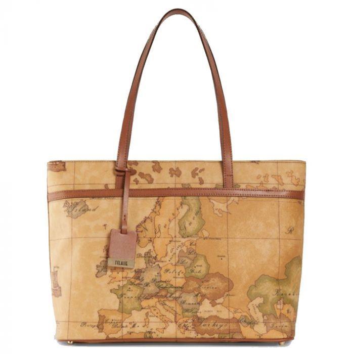 - Borsa shopping in tessuto goffrato stampa Geo Classic