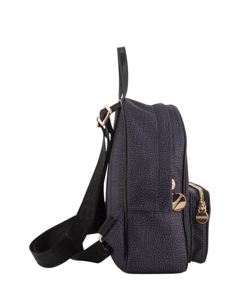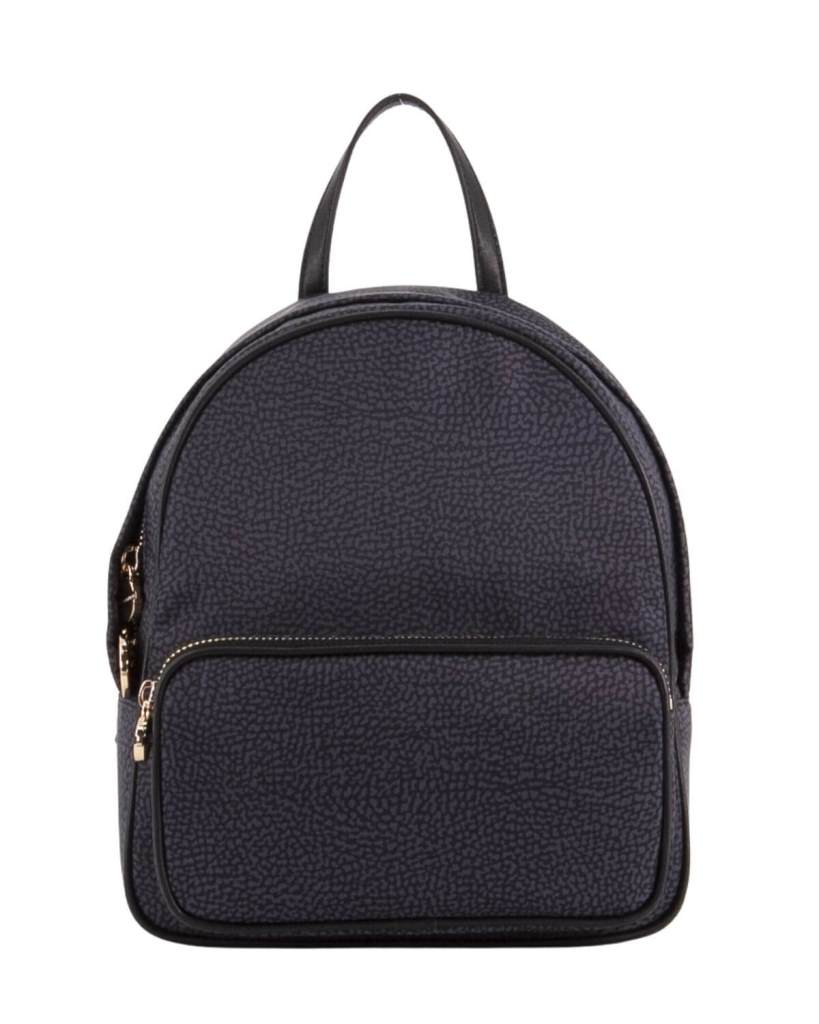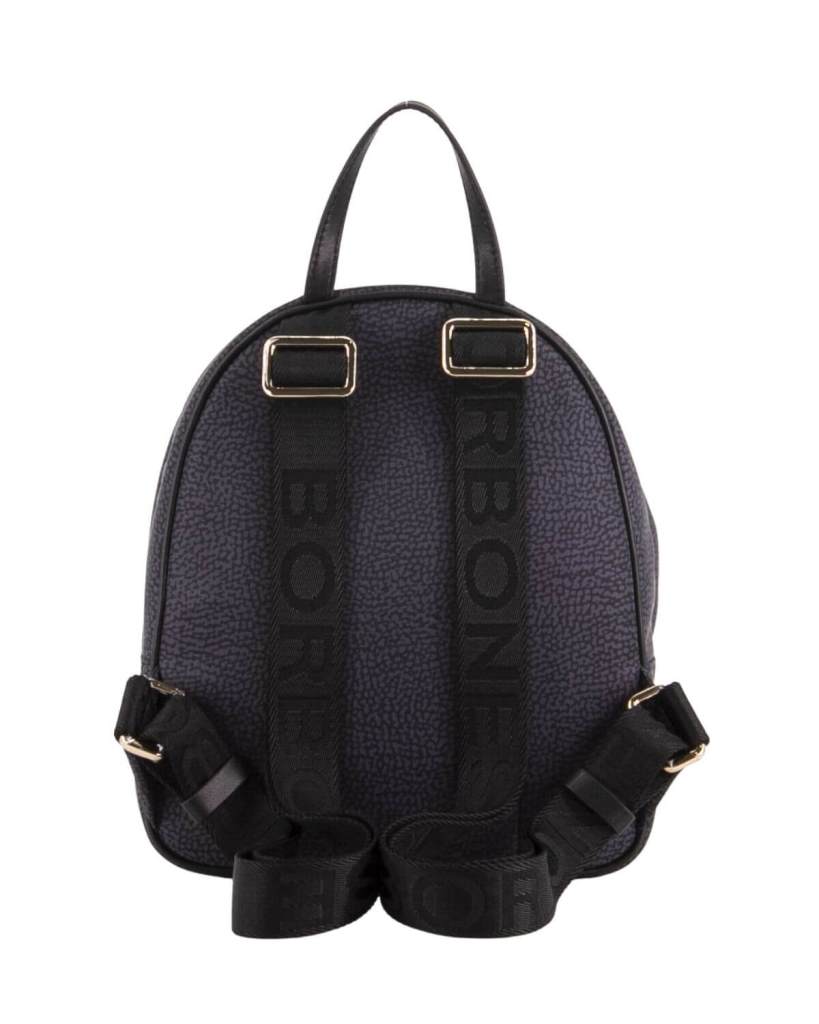 Zaino small in nylon jet op nero con dettagli in pelle, chiusura e tasca esterna con zip. Spallacci regolabili in nastro di nylon logato.