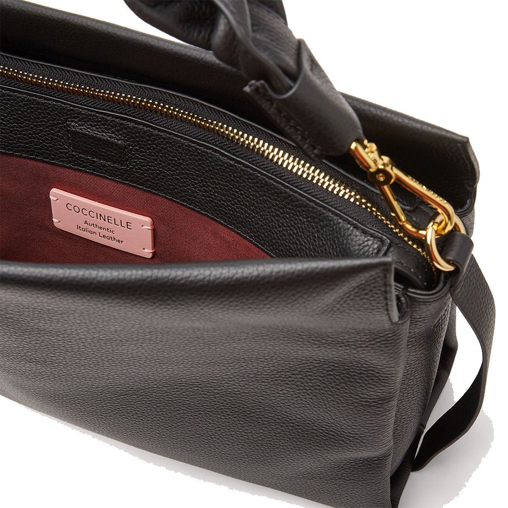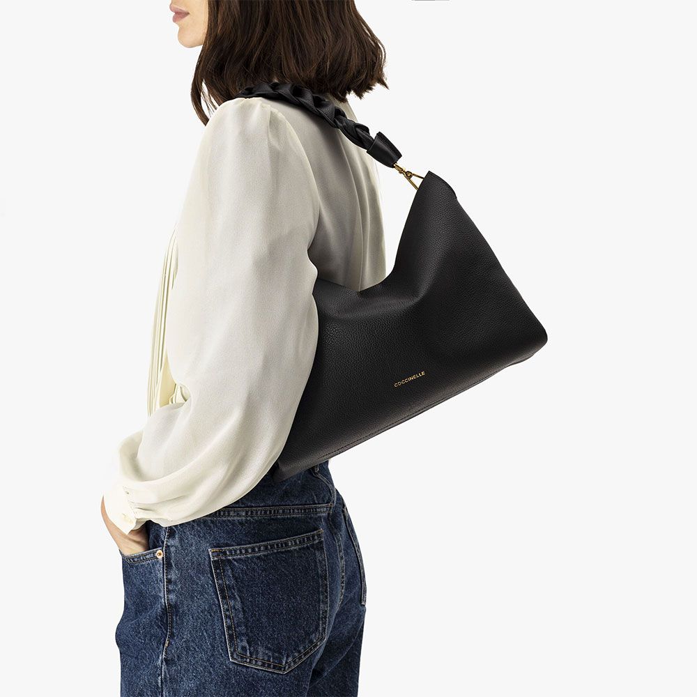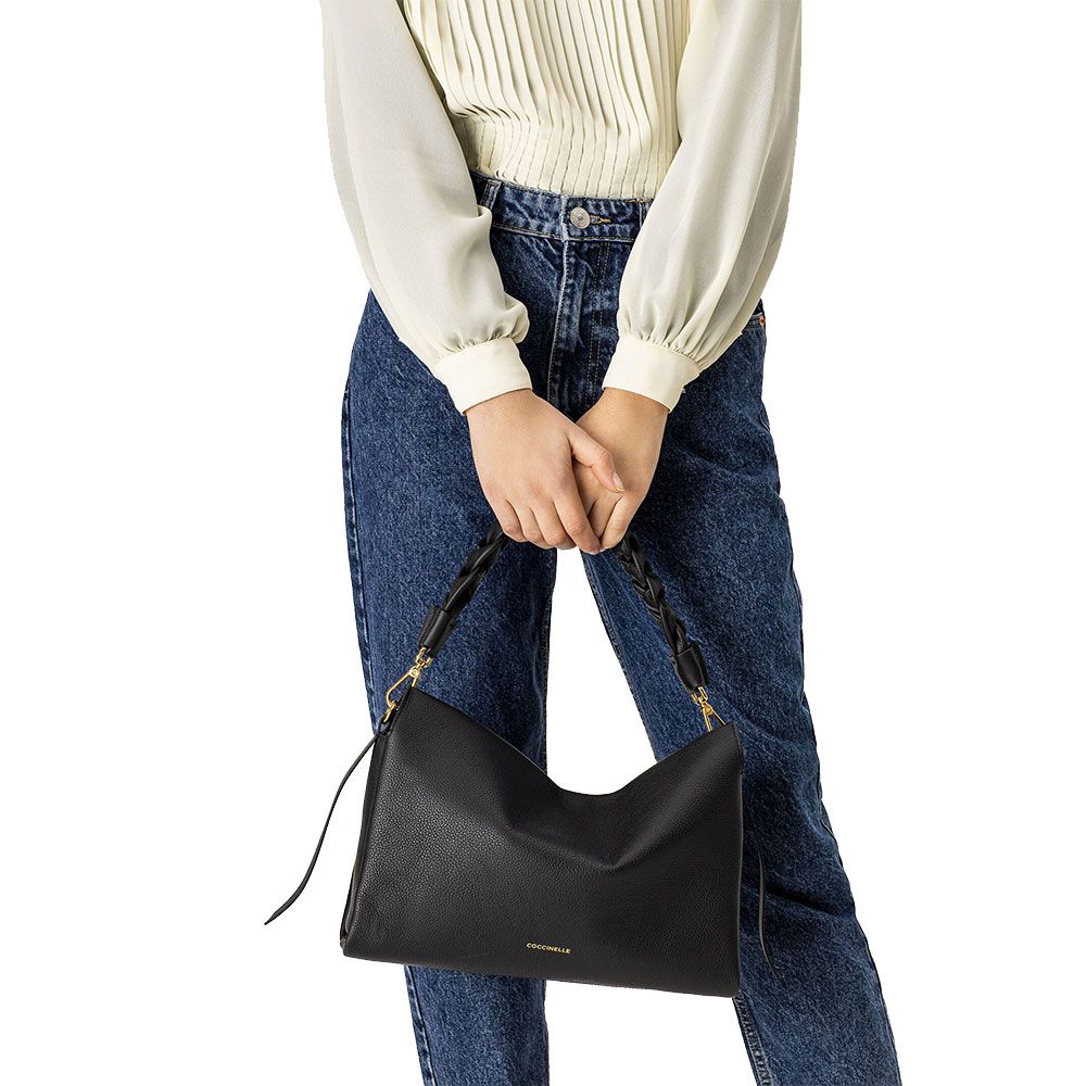 BORSA A SPALLA COCCINELLE IN PELLE BOHEME MEDIUM GRANA DOUBLE M50 190201 613 NOIR/COGNAC -20%