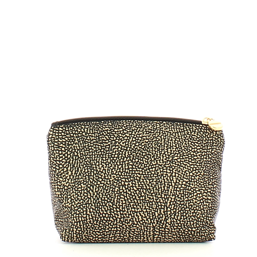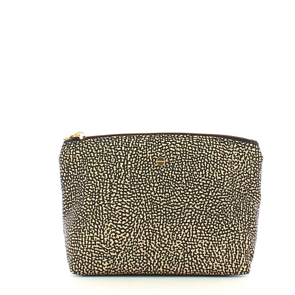 Busta Medium in Nylon Riciclato OP Naturale Nero Borbonese, spaziosa e funzionale pochette realizztaa in tessuto sintetico, con iconica stampa ad occhio di pernice. Comoda chiusura con cerniera e interno foderato.