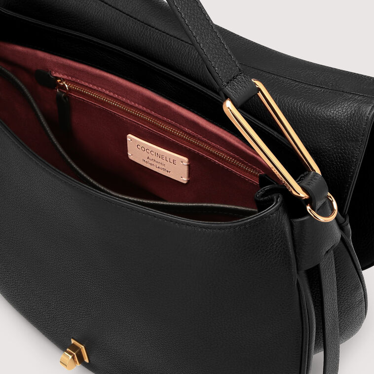 La linea di borse Coccinelle Magie presenta un'estetica femminile con una particolare attenzione ai dettagli e alla contemporaneità. La silhouette è sinuosa e rotonda, ogni modello è inoltre impreziosito dalla chiusura a girello, dettaglio iconico di Coccinelle rivisitato in chiave moderna. Questo modello è realizzato in pelle lavorata tramite specifici macchinari e poi bottalata al fine di mantenerne la morbidezza. È una pelle molto resistente che si presta a una facile pulizia, ideale per un uso quotidiano.