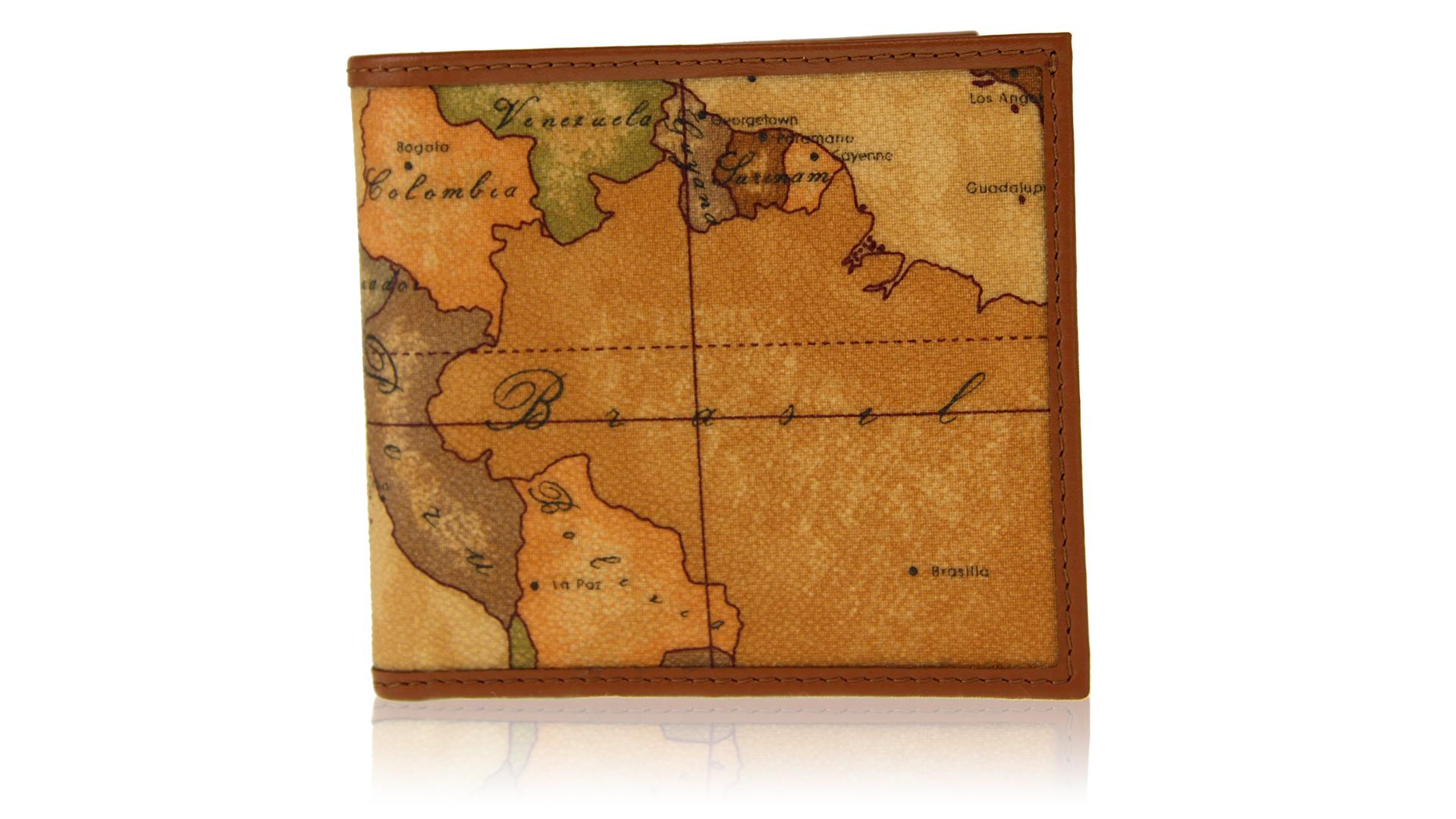 Portafogli uomo in tessuto stampato con cartina geografica Geo Classic, con scomparti per banconote e carte di credito, tasca portamonete, logo 1AClasse. Conterrà tutto il necessario senza essere ingombrante.