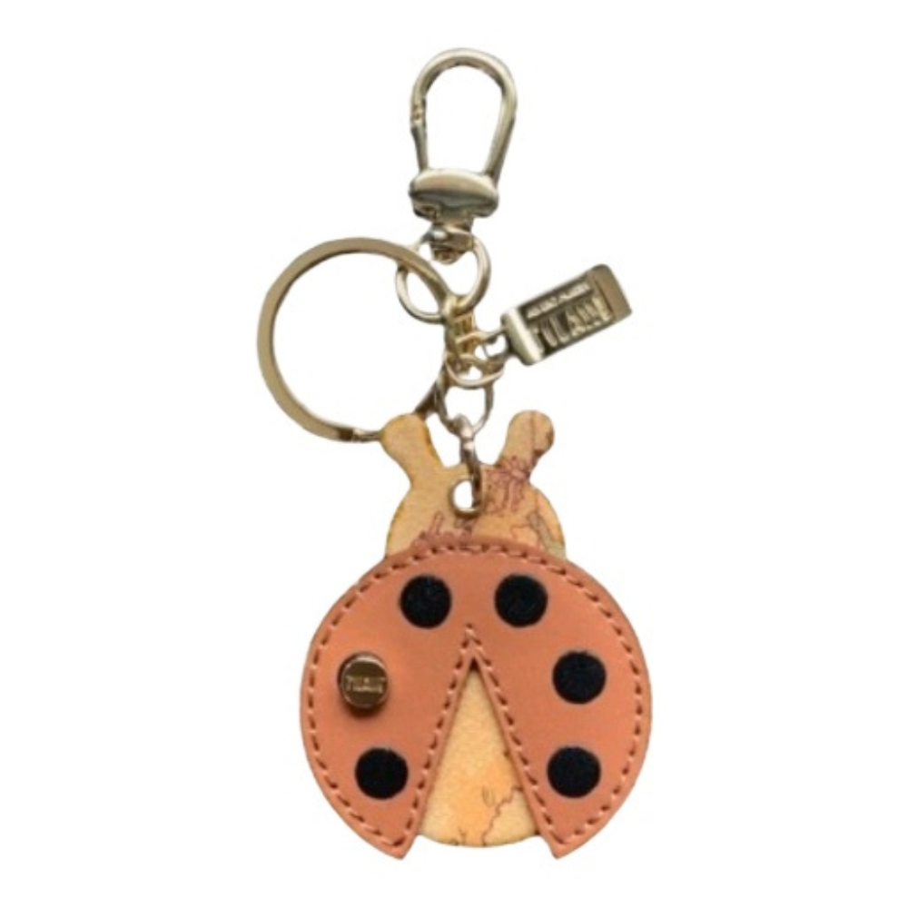 Portachiavi a forma di coccinella in tessuto goffrato stampa Geo Classic con dettagli in pelle liscia, metalleria in oro chiaro con logo 1AClasse, dicitura Made in Italy impressa a caldo sul retro. Una dolce idea regalo caratterizzata dallo stile Prima Classe.