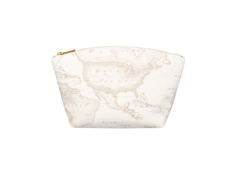 • Pochette in tessuto stampato con cartina geografica Geo White