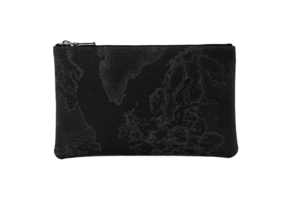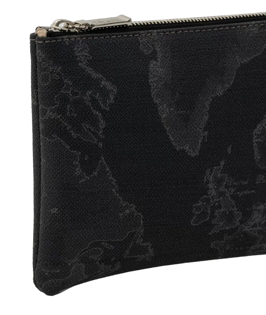 Pochette in tessuto stampato con cartina geografica Geo Classic piatta, di forma rettangolare, chiusa con zip. Impreziosita dai dettagli in metallo dorato, è un accessorio di culto abbastanza capiente per contenere con stile il tuo nécessaire.