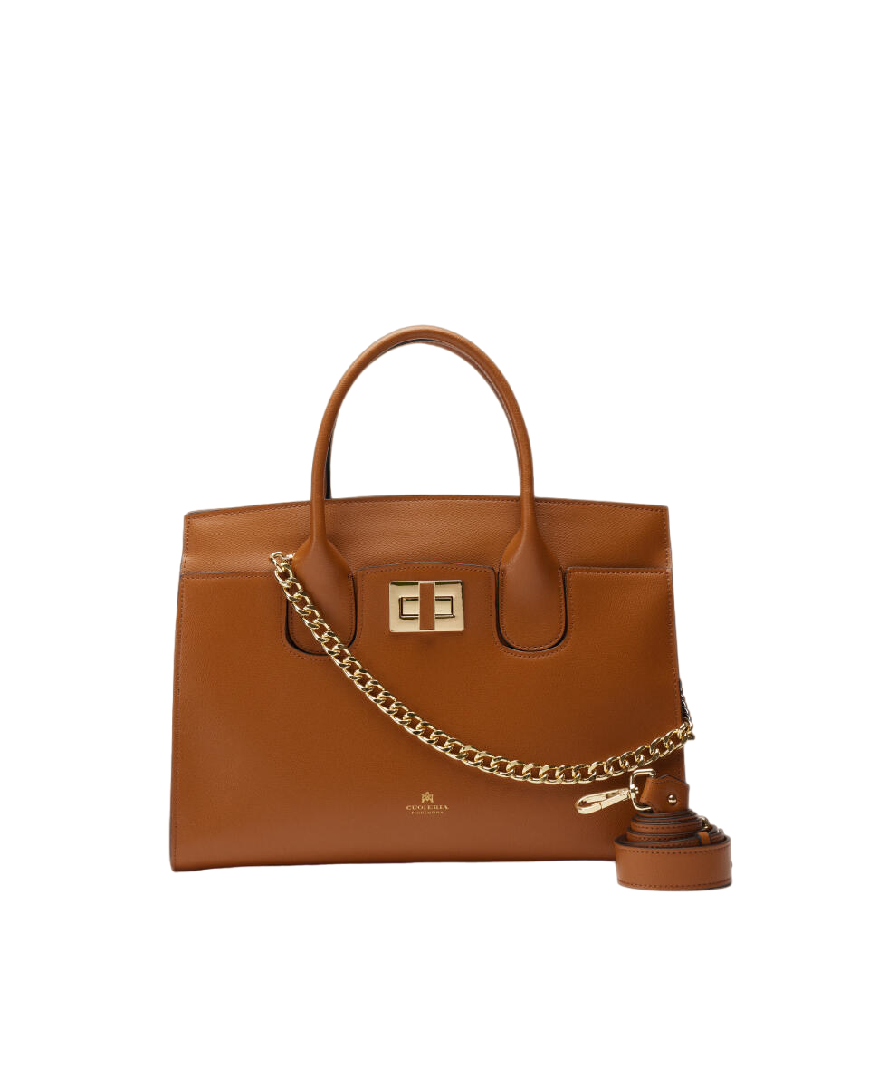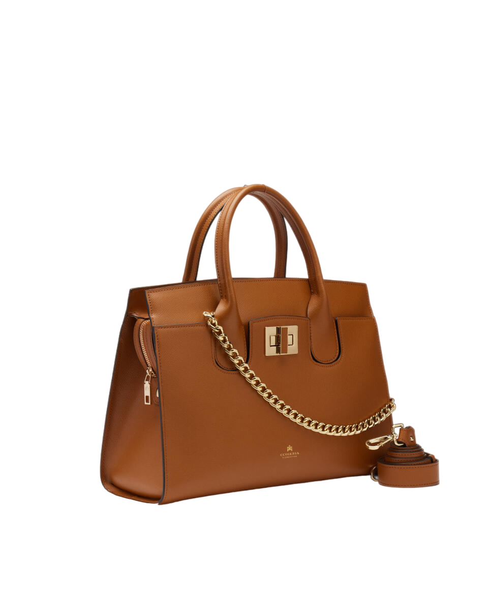 Raffinata e preziosa, la large tote Bella esprime la propria eleganza attraverso un design solido e luminosi inserti dorati. Ideale per donna impegnata tra lavoro e appuntamenti personali, ha gli spazi perfetti per contenere comodamente l'essenziale, il laptop e la trousse per il trucco in vista di una cena con i colleghi. Bella fa della classe il punto di forza: tutto lo spazio che serve, tutto lo stile che serve.