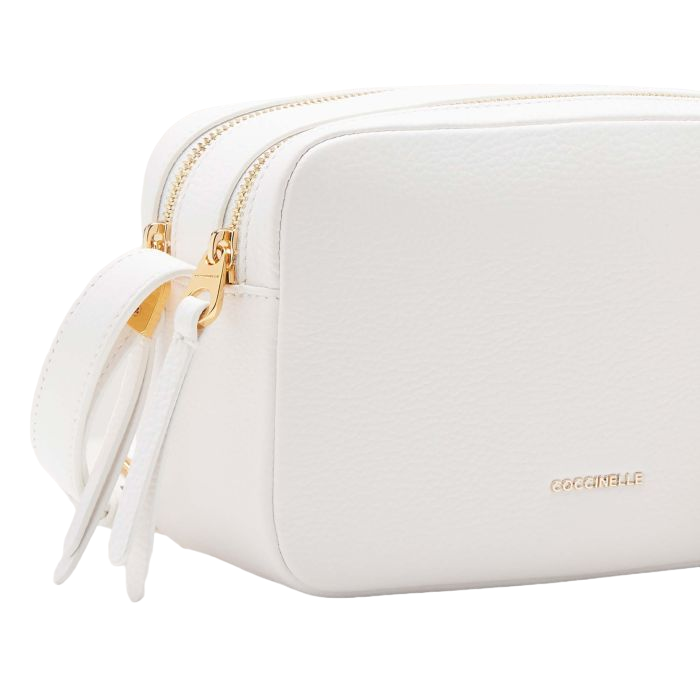 La linea Coccinelle Gleen si caratterizza per uno stile essenziale e contemporaneo, con linee decise e versatili. Ogni modello è realizzato per soddisfare le esigenze di praticità e quotidianità. La tracolla inoltre, si arricchisce di un dettaglio d'identità: il trittico in metallo con una fibbia che richiama l’iconica forma del plettro. Questo modello è realizzato in pelle lavorata tramite specifici macchinari e poi bottalata al fine di mantenerne la morbidezza. È una pelle molto resistente che si presta a una facile pulizia, ideale per un uso quotidiano.