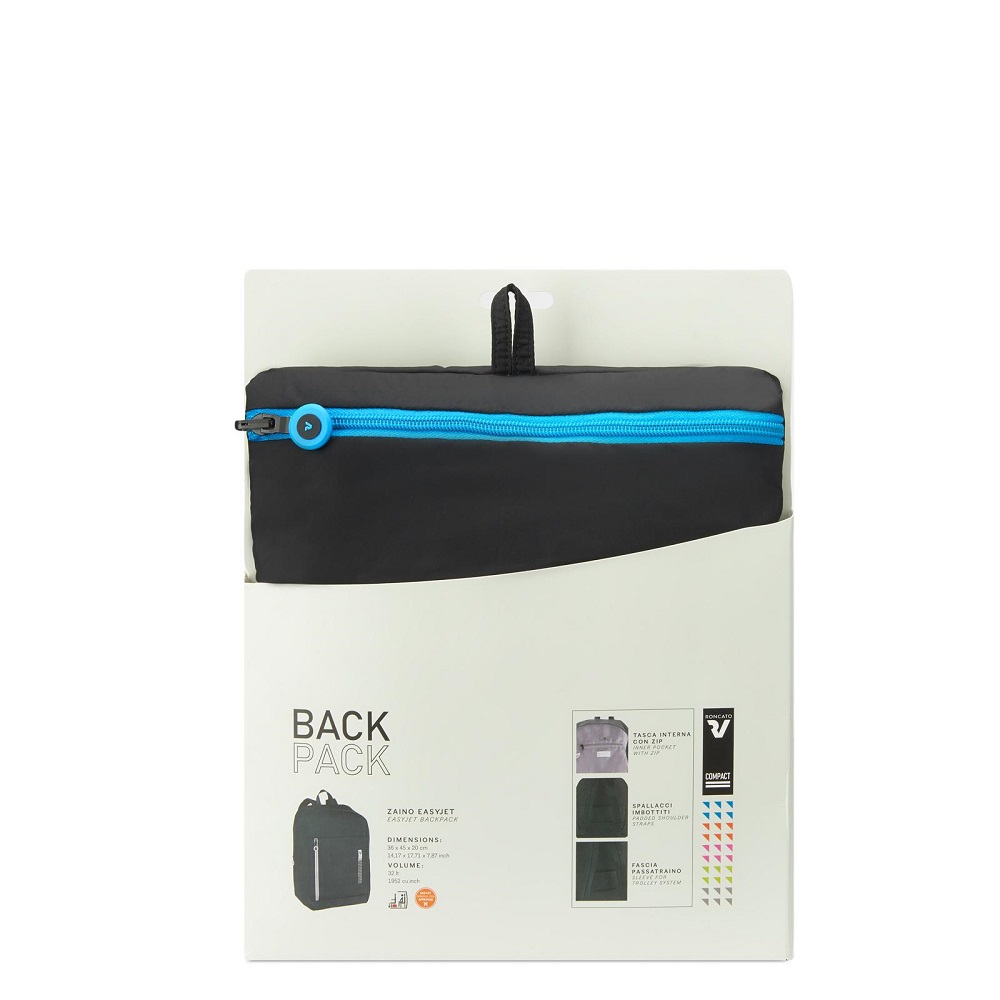 ZAINO EASYJET PIEGHEVOLE RONCATO COMPACT NEON 412012 01 NERO/AZZURRO