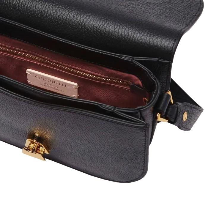 L'immancabile boxy bag della linea Coccinelle Dew, dal design strutturato ma con un twist raffinato. Nelle linee curve e femminili ritroviamo i tratti distintivi del brand, mentre la novità è la chiusura a battente caratterizzata da un gioco di sovrapposizioni dell'iconico plettro. Questo modello è realizzato in pelle lavorata tramite specifici macchinari e poi bottalata al fine di mantenerne la morbidezza. È una pelle molto resistente che si presta a una facile pulizia, ideale per un uso quotidiano.