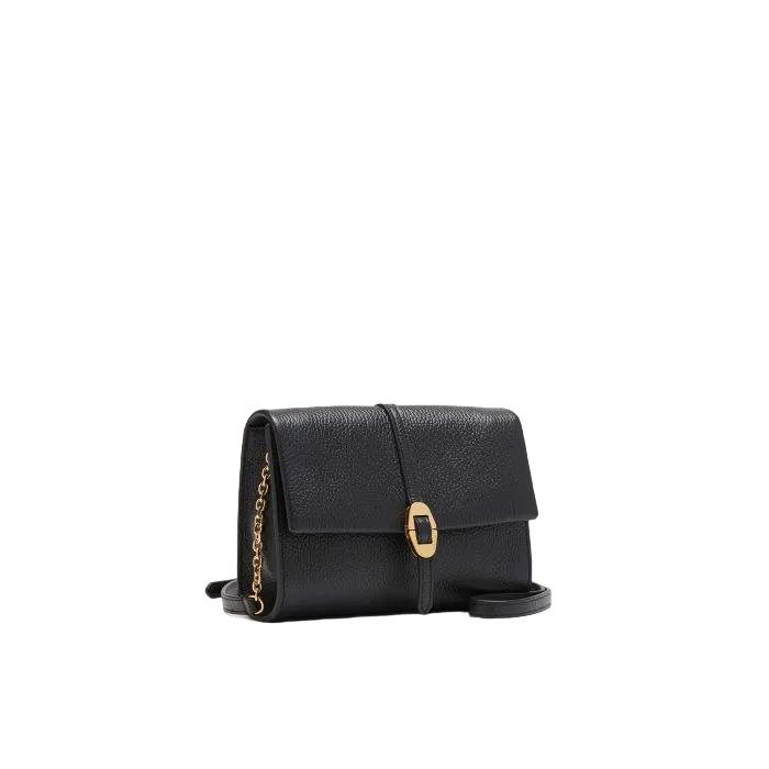 Stile contemporaneo e linea essenziale per la minibag della linea Coccinelle Dorian. La forma geometrica è ammorbidita grazie all'utlizzo del classico pellame granato, il fianco e la patta sono costruiti in modo che le cuciture risultino invisibili, mentre i dettagli in metallo della tracolla e della chiusura frontale completano l’estetica con un elemento iconico. Questo modello è realizzato in pelle lavorata tramite specifici macchinari e poi bottalata al fine di mantenerne la morbidezza. È una pelle molto resistente che si presta a una facile pulizia, ideale per un uso quotidiano.