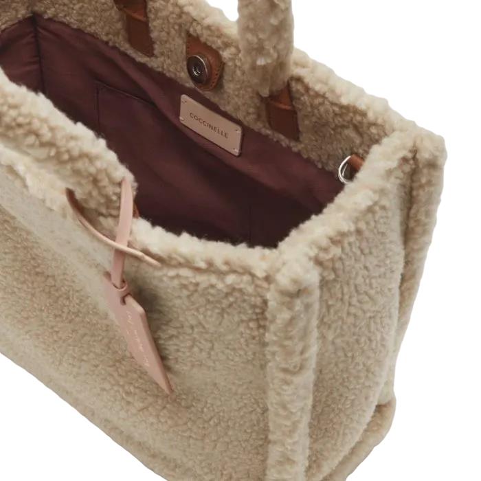 Never Without Bag è una shopping speciale che si veste di materiali e colori differenti di stagione in stagione. La borsa è arricchita dal pendente in pelle "Coccinelle NEVER WITHOUT BAG": una borsa comoda e capiente di cui non si può fare a meno. Questo modello è realizzato in tessuto effetto shearling. Per preservare la bellezza della borsa si consiglia di evitare la prolungata esposizione a luce diretta, polvere, fonti di calore e di proteggerla da agenti atmosferici avversi.