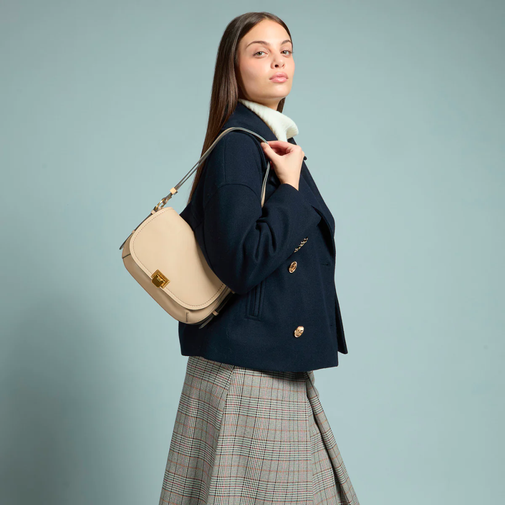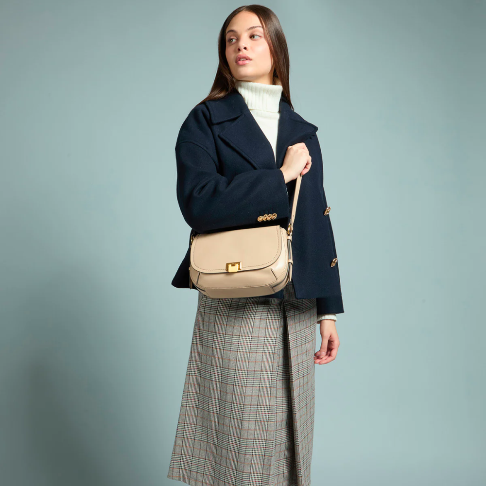 - borsa a tracolla si chiude con patta e chiusura con fibbia