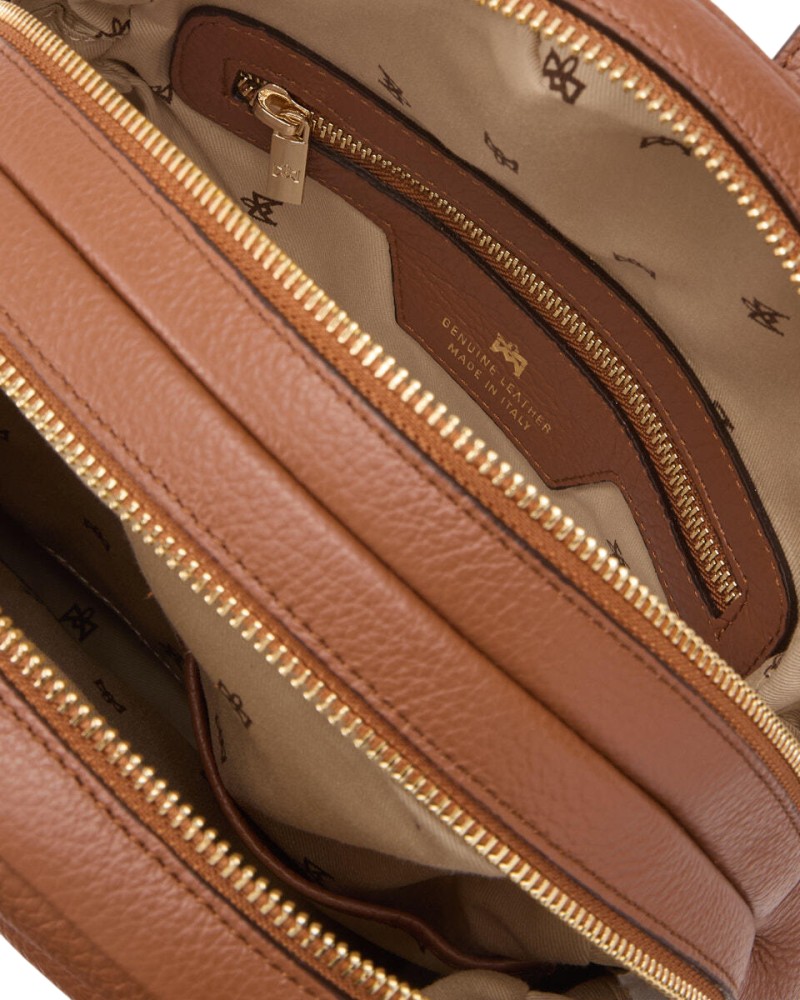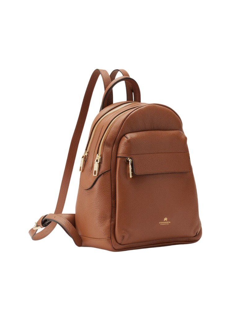 - Dettagli esterni: tasca frontale con chiusura a zip e logo stampato a fuoco colore oro; tashino posteriore con chiusura a zip.