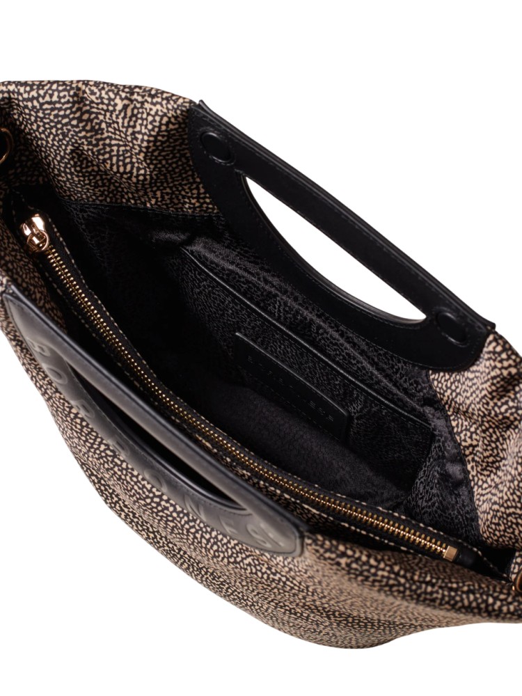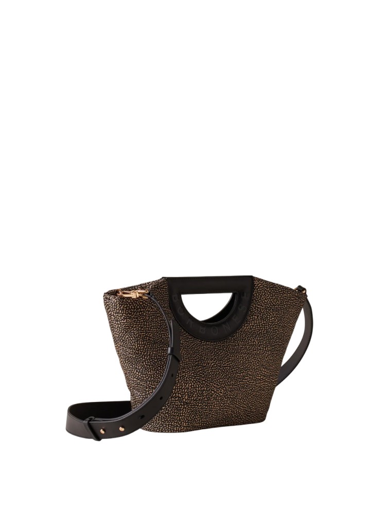 L'impugnatura che riprende la forma di una staffa è la cifra caratterizzante della linea Bouche. Borse ideali per essere indossate all day long.