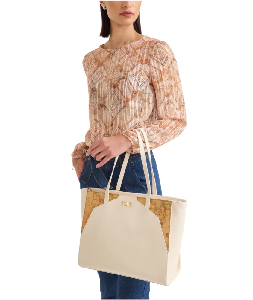 Gli ampi volumi della borsa shopping Java City fanno risaltare gli inserti a lancia in tessuto Geo Classic, omaggiando le linee architettoniche indonesiane che hanno ispirato la linea. Il maxi logo 1ᴬ Classe aggiunge un punto luce al modello, capiente e provvisto di tre tasche interne. Il tessuto saffiano è declinato in tonalità classiche e versatili, perfette per abbinarsi alle stampe e ai colori vivaci dei look estivi.