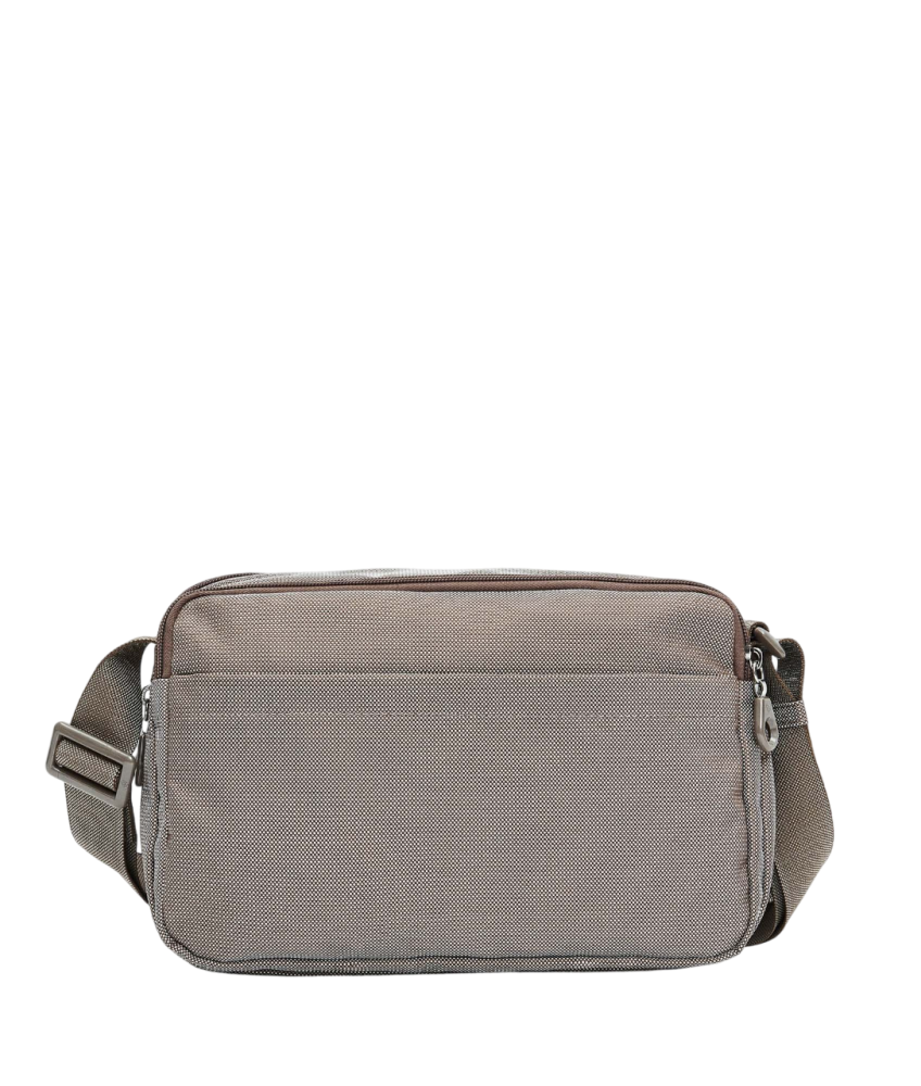 Borsa a tracolla media espandibile con zip inferiore e tasca frontale in tessuto. Doppia portabilità, tasche smart, dettagli personalizzati e tracolla regolabile in jacquard.