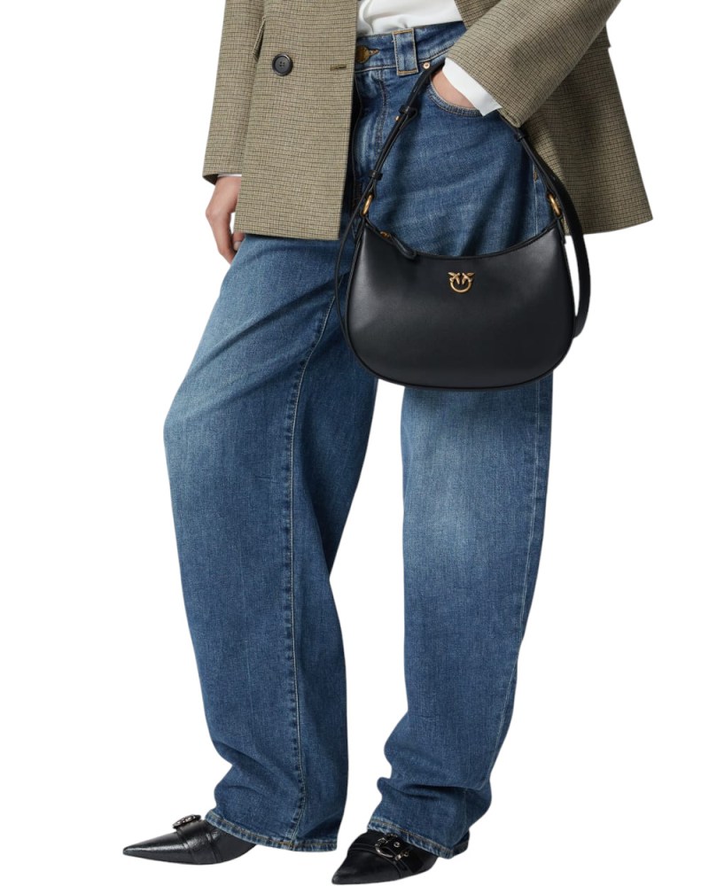 Borsa piccola a spalla Half Moon dalla caratteristica forma a mezzaluna in morbida pelle mano seta, personalizzata con placchetta Love Birds Diamond Cut in metallo, galvanica antique gold. Il manico regolabile in pelle consente di portare la borsa sia a spalla che a mano. Interno foderato in microfibra scamosciata, che comprende una pratica tasca a parete chiusa con zip. Chiusura con zip. Attiva la tua borsa