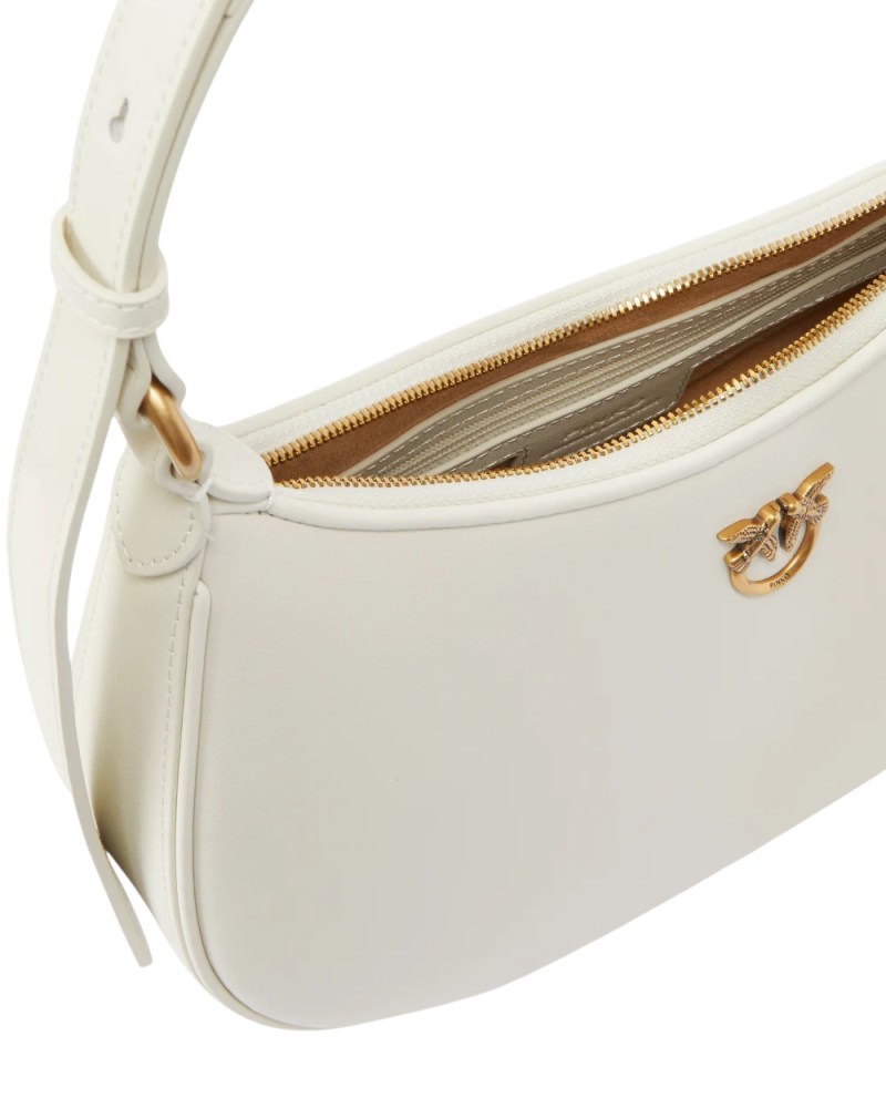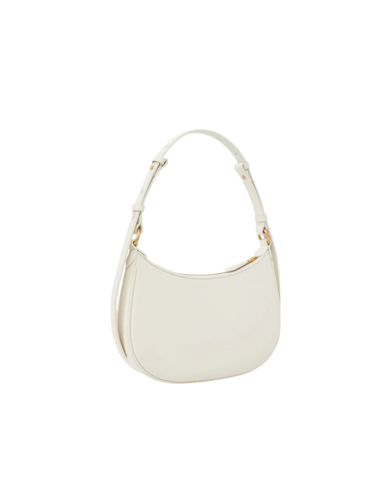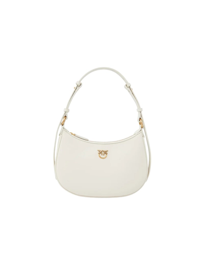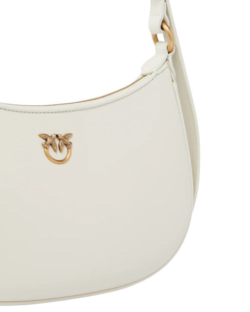 Borsa piccola a spalla Half Moon dalla caratteristica forma a mezzaluna in morbida pelle mano seta, personalizzata con placchetta Love Birds Diamond Cut in metallo, galvanica antique gold. Il manico regolabile in pelle consente di portare la borsa sia a spalla che a mano. Interno foderato in microfibra scamosciata, che comprende una pratica tasca a parete chiusa con zip. Chiusura con zip. Attiva la tua borsa