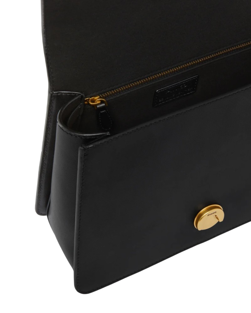 Borsa a mano dalla forma a trapezio Love Bag Top Handle Light in morbida pelle mano seta, che si caratterizza per il suo design decostruito e leggero. Chiusura completata dall'iconica fibbia in metallo Love Birds Diamond Cut. L'interno è foderato in microfibra scamosciata e comprende una pratica tasca a parete con zip. La borsa è completa di manico singolo superiore per la portata a mano e di tracolla regolabile e rimovibile in pelle, che la rende una pratica borsa da utilizzare tutti i giorni. Attiva la tua borsa PINKO: verifica l'autenticità del tuo prodotto e accedi all'esperienza personalizzata avvicinando il tuo smartphone al ricamo Love Birds che trovi sul retro della borsa!