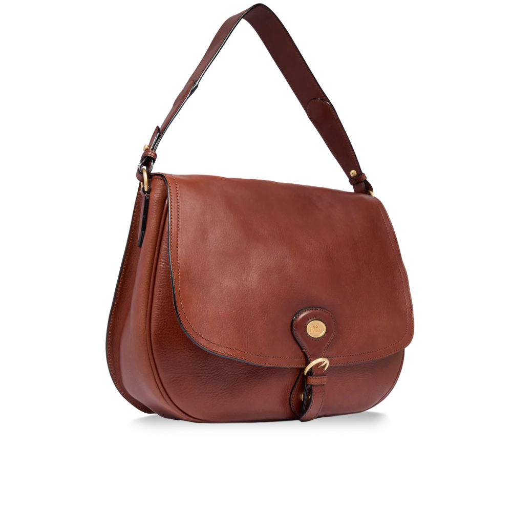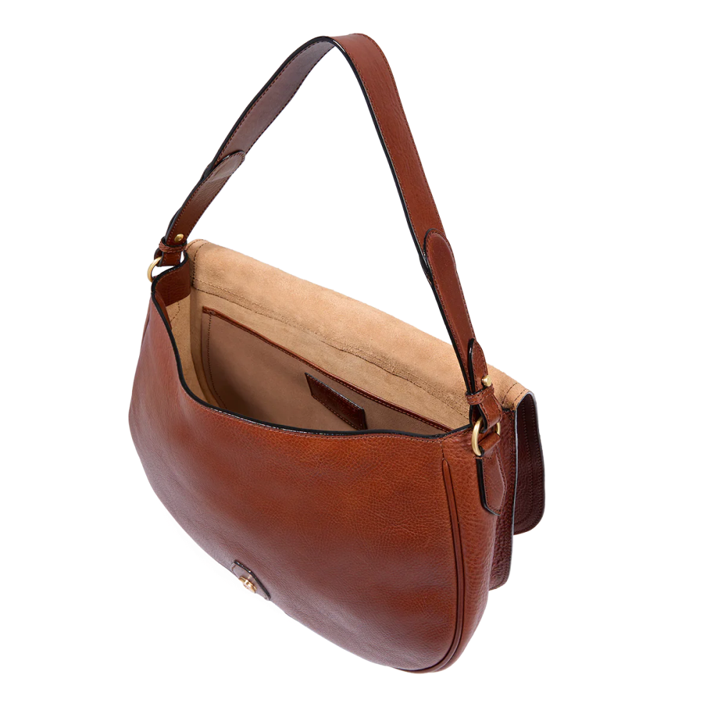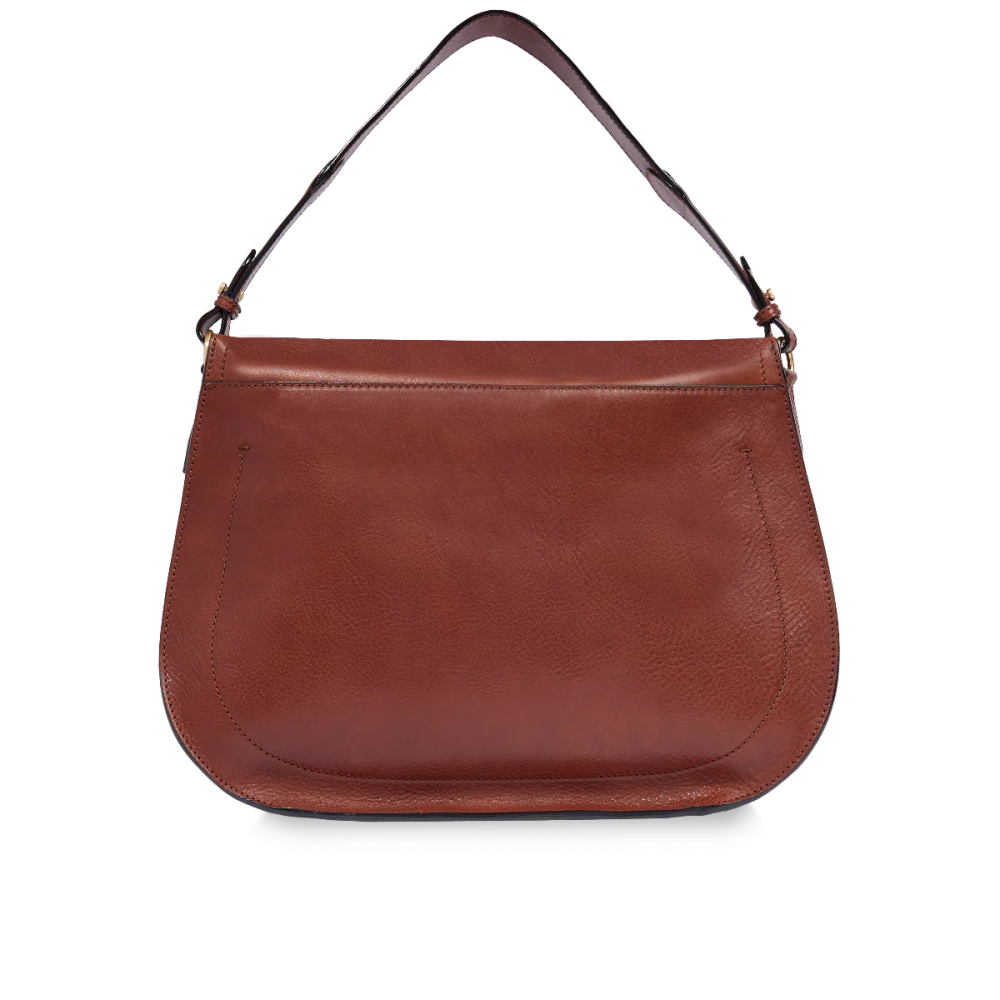 Borsa in pelle con tracolla removibile e doppia portabilità, da portare a spalla o a mano, con patta e fibbia frontale