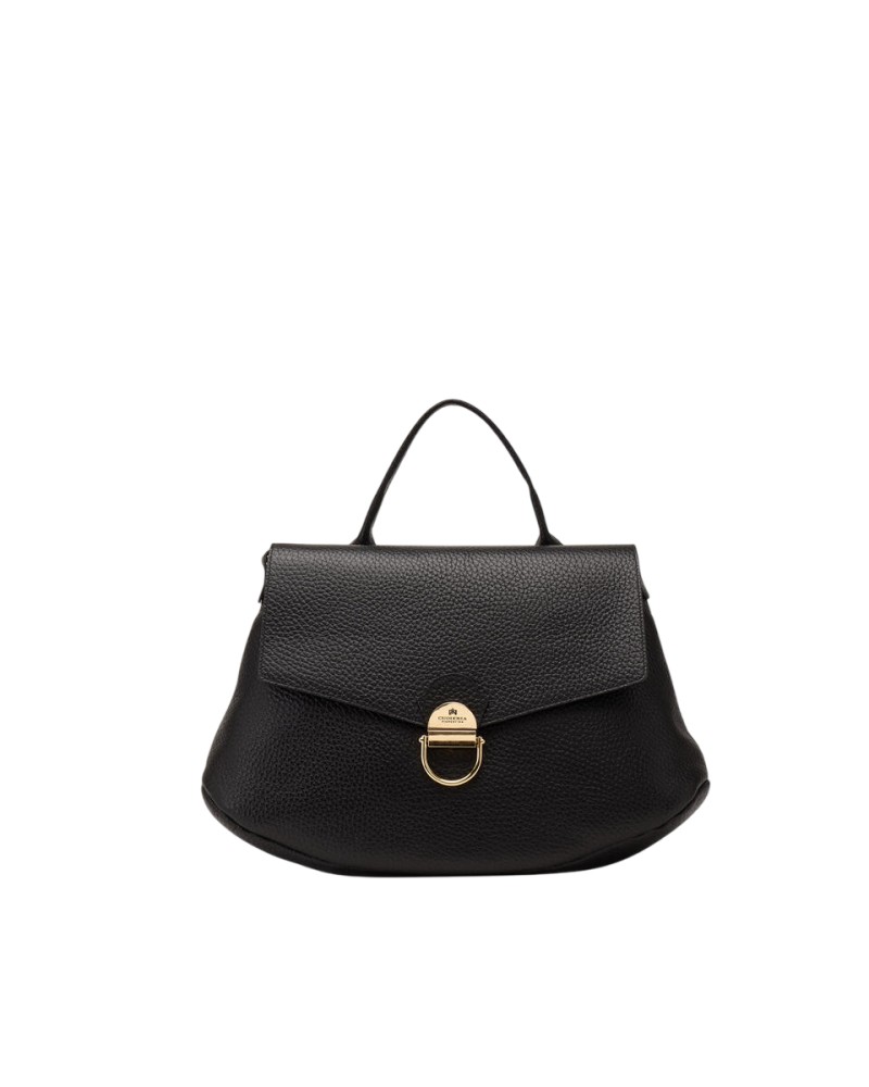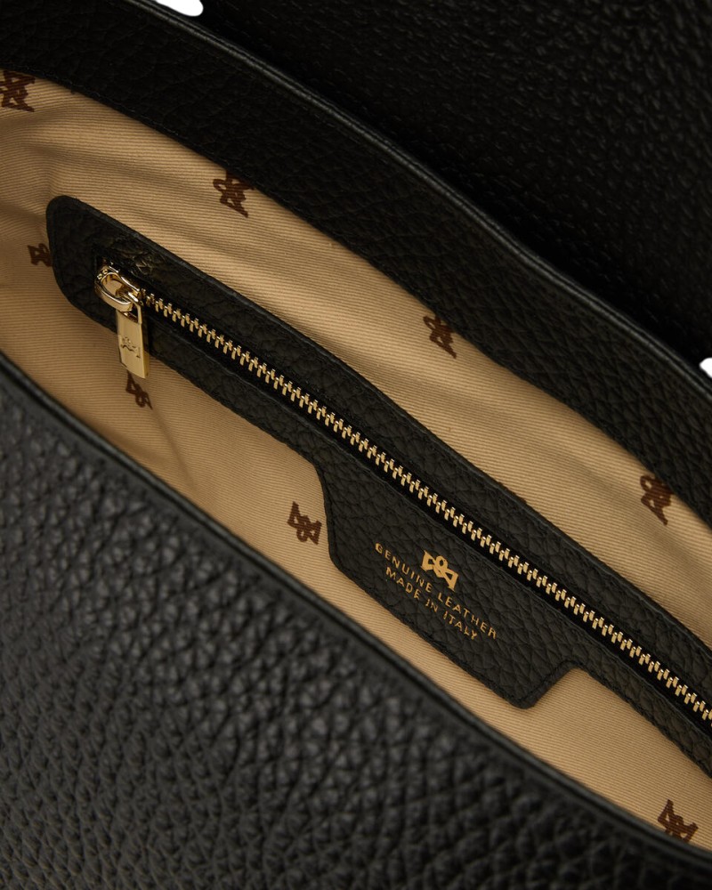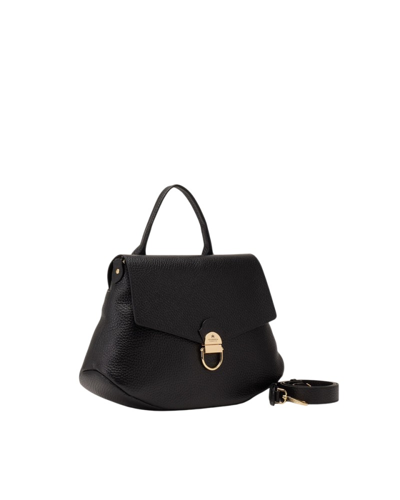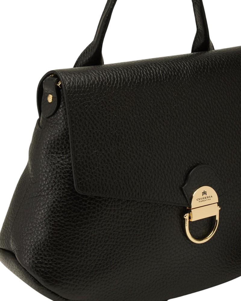 - Chiusura: patta con chiusura a scatto personalizzata in metallo color oro.