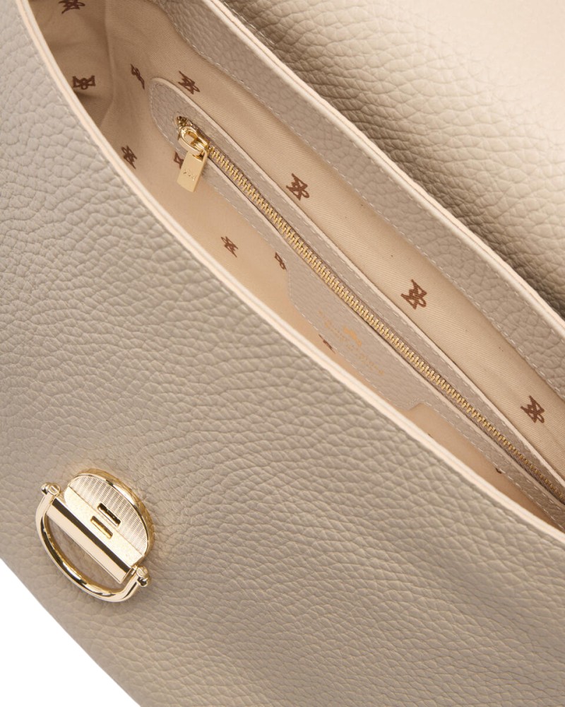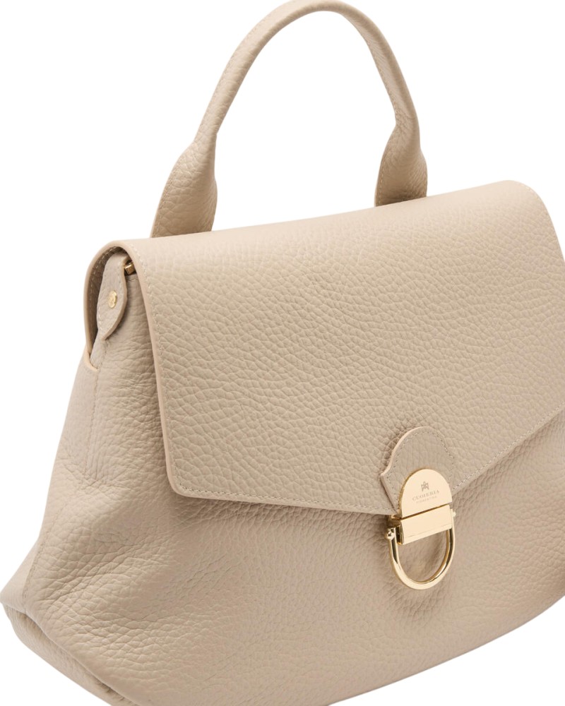 - Chiusura: patta con chiusura a scatto personalizzata in metallo color oro.