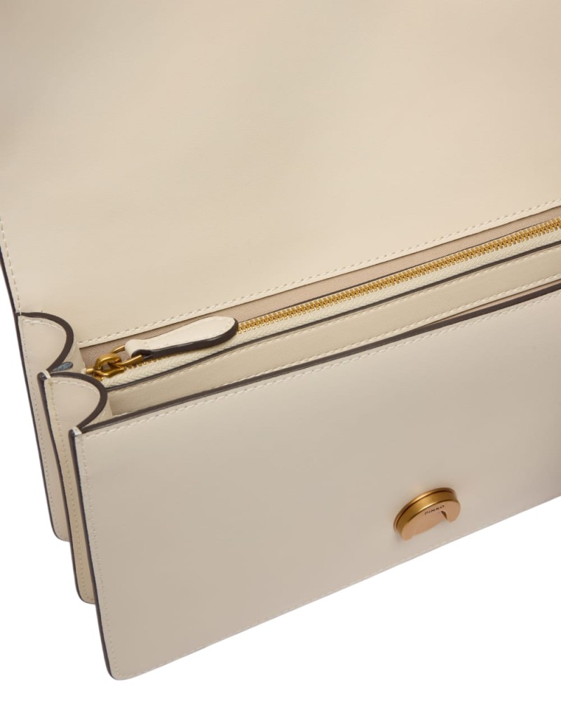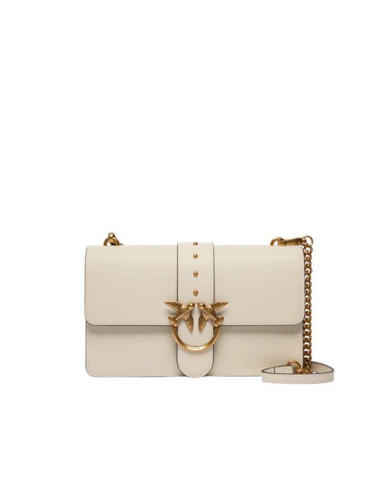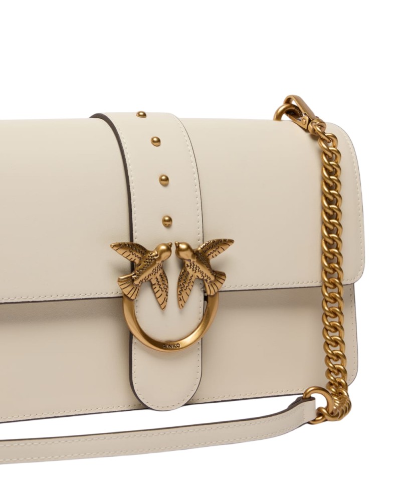 Borsa a mano media Love Bag One realizzata in pelle dalla mano seta. Caratterizzato dalla tracolla regolabile e rimovibile in pelle e catena, il modello risulta estremamente versatile e pratico. La chiusura a baccello con bottone magnetico è completata da fibbia con logo uccellini Love Birds Diamond Cut e piccole borchie in metallo. L'interno è foderato in cotone e presenta una tasca con zip per tenere al sicuro i tuoi essenziali. Attiva la tua borsa PINKO: verifica l'autenticità del tuo prodotto e accedi all'esperienza personalizzata avvicinando il tuo smartphone al ricamo Love Birds che trovi sul retro della borsa!