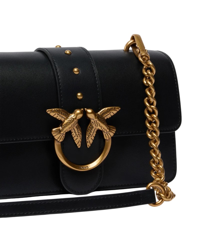 Borsa a tracolla piccola Love Bag One realizzata in pelle dalla mano seta. Caratterizzato dalla tracolla regolabile e rimovibile in pelle e catena, il modello risulta estremamente versatile e pratico. La chiusura a baccello con bottone magnetico è completata da fibbia con logo uccellini Love Birds Diamond Cut e piccole borchie in metallo in galvanica antique gold. L'interno è foderato in cotone e presenta una tasca con zip per tenere al sicuro i tuoi essenziali. Attiva la tua borsa PINKO: verifica l'autenticità del tuo prodotto e accedi all'esperienza personalizzata avvicinando il tuo smartphone al ricamo Love Birds che trovi sul retro della borsa!