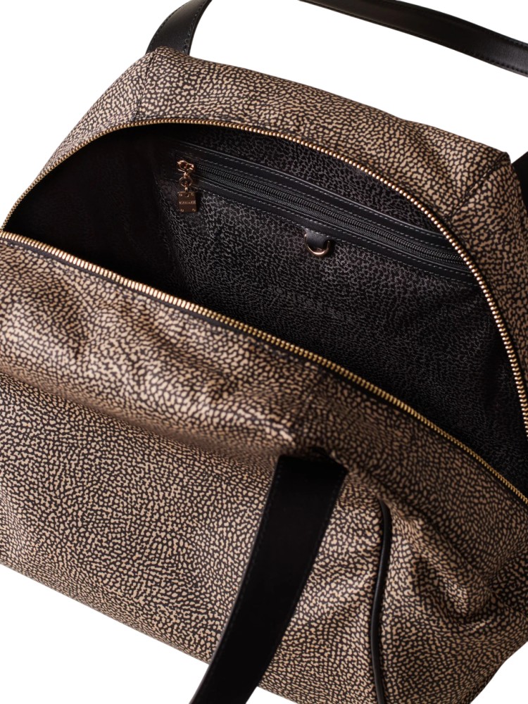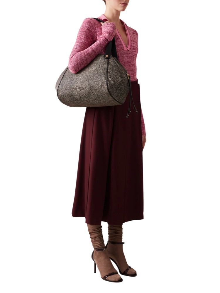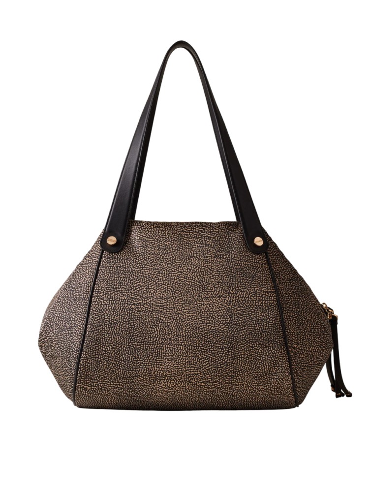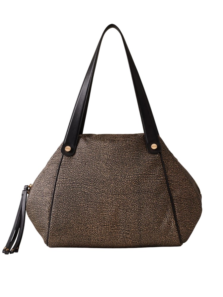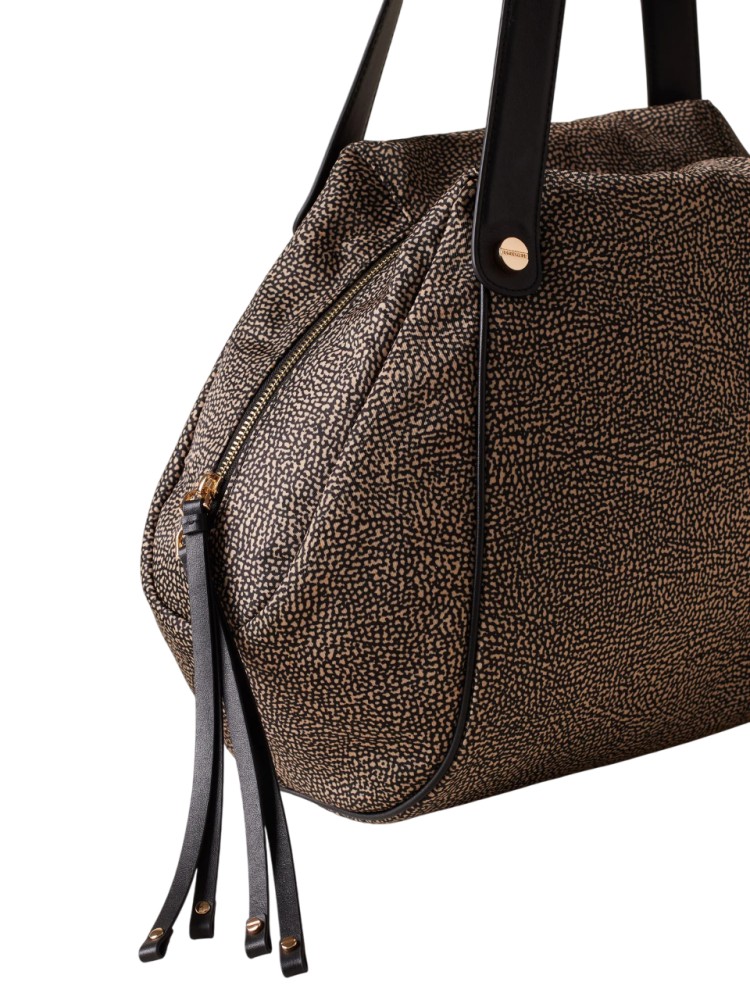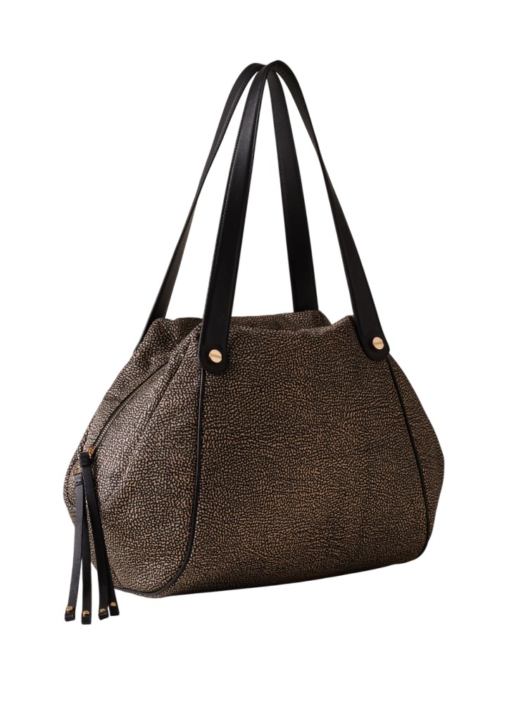 Borsa a spalla di tessuto riciclato OP e Pelle