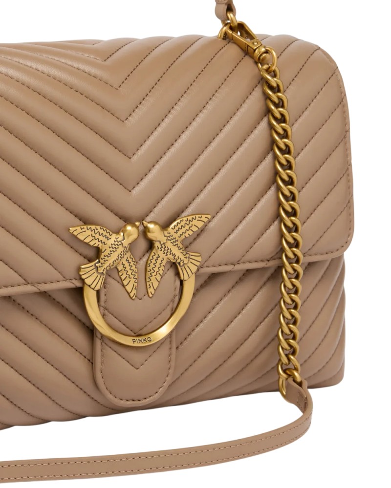 BORSA A MANO PINKO BIG LOVE PUFF CHEVRON IN PELLE 100042 A0GK D01Q BISCOTTO ZENZERO - ANTIQUE GOLD -20%