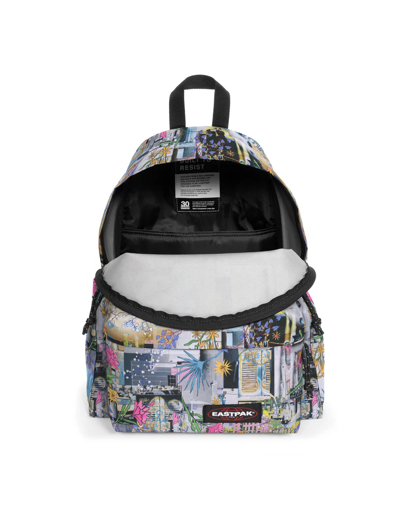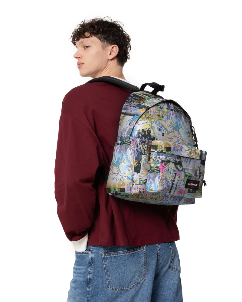 Un colorato collage di stampe ti trasporta in un mondo immaginario con una stravagante fusione di foto e disegni. L'ultima versione del nostro iconico zaino Eastpak è un modello ideale per tutti i giorni, dotato di custodia integrata per laptop, tasca di sicurezza e due tasche portaborraccia multifunzionali.