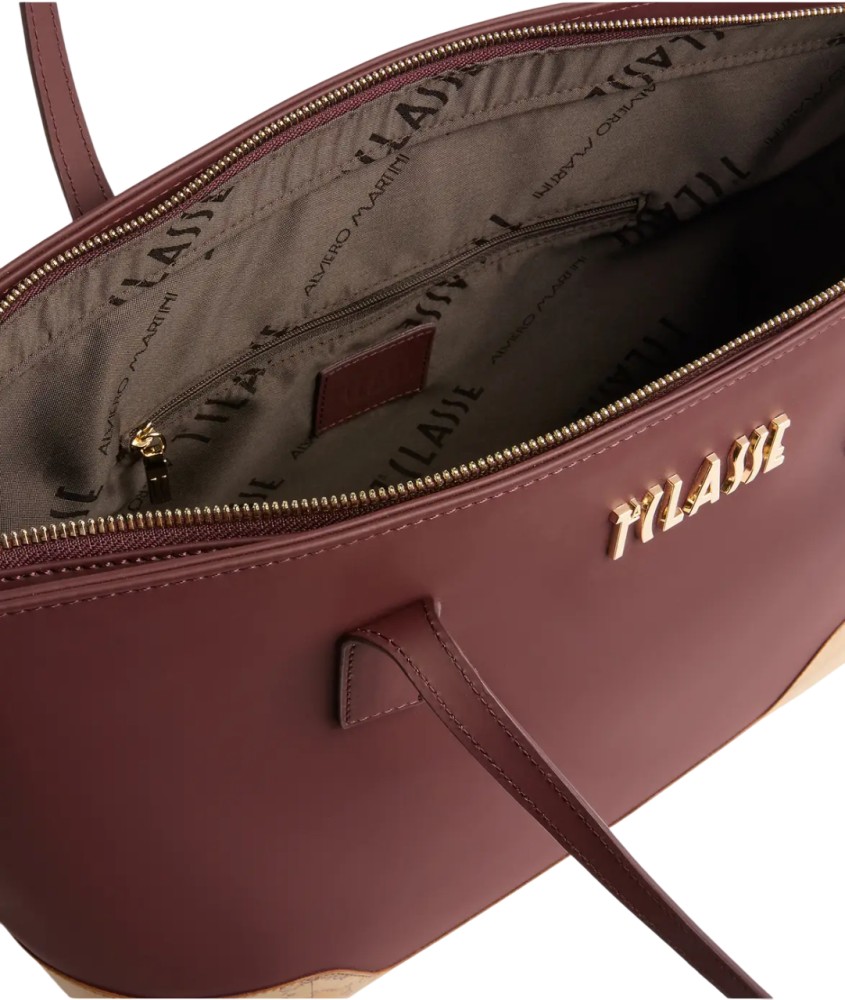 Capiente e funzionale grazie al morbido tessuto gommato, la borsa shopping Frost Geo si arricchisce dell'ampio inserto in tessuto effetto nappa stampa Geo Classic sul fondo: in alto, il maxi logo 1ᴬ Classe in oro chiaro ed eleva lo stile urban con la classe iconica del brand. I volumi si completano di tre tasche interne, mentre la raffinata tonalità Vino la rende perfetta per donare un tocco di colore ai look invernali.