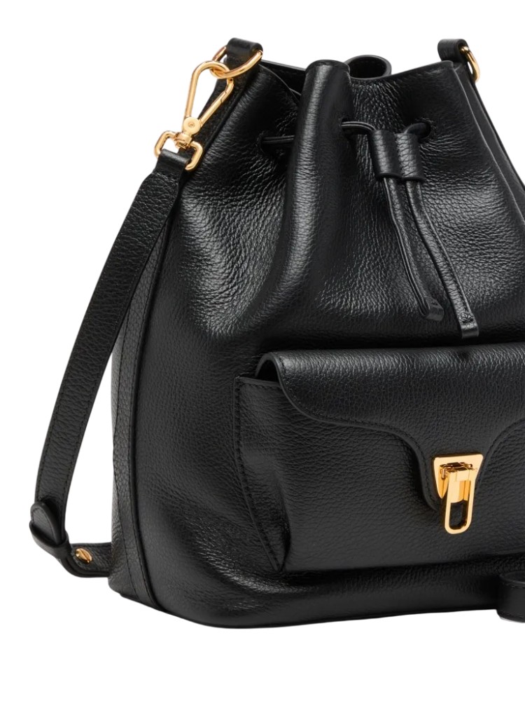 Coccinelle Beat è una tra le icone del brand: la distintiva chiusura a battente con il plettro è il simbolo d’identità Coccinelle, che per questa collezione si reinventa con funzionalità contemporanee ed eleganti. Il secchiello con tracolla in pelle dalla doppia portabilità è un mix perfetto tra struttura e morbidezza, tra praticità e design contemporaneo. Questo modello è realizzato in pelle lavorata tramite specifici macchinari e poi bottalata al fine di mantenerne la morbidezza. È una pelle molto resistente che si presta a una facile pulizia, ideale per un uso quotidiano.