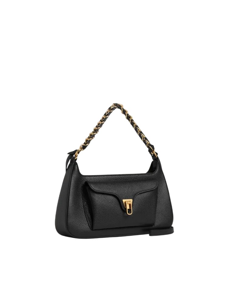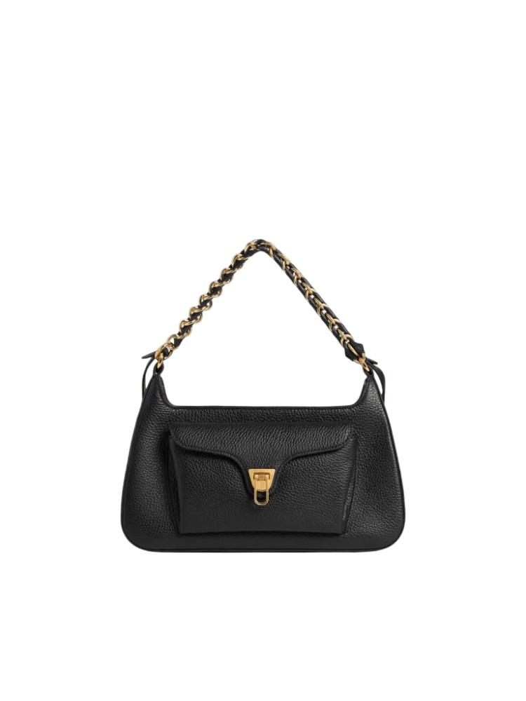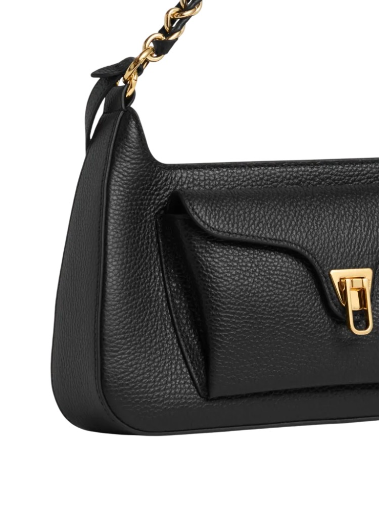 Coccinelle Beat è una tra le icone del brand: la distintiva chiusura a battente con il plettro è il simbolo d’identità Coccinelle, che per questa collezione si reinventa con funzionalità contemporanee ed eleganti. La borsa a spalla è impreziosito dal manico in pelle e catena, un mix perfetto tra struttura e morbidezza, tra praticità e design contemporaneo. Questo modello è realizzato in pelle lavorata tramite specifici macchinari e poi bottalata al fine di mantenerne la morbidezza. È una pelle molto
