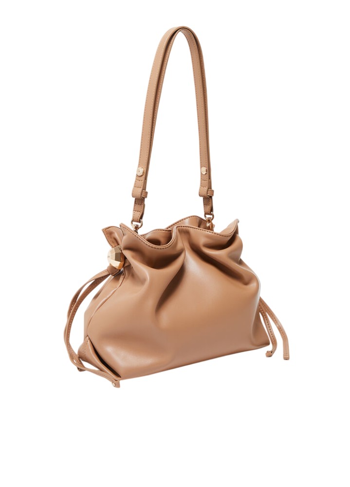Compatta, scolpita, inconfondibile, questa piccola Riccy Bag trasforma la morbidezza in una dichiarazione di stile. Volumi pieni che si stringono in un’arricciatura a coulisse, dettagli bold che tracciano la silhouette con un rigore quasi architettonico. Perfetta anche crossbody grazie alla tracolla chain removibile.