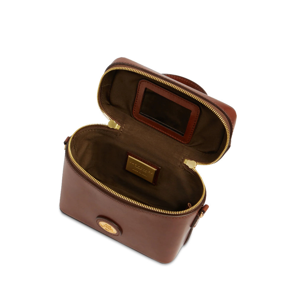 Mini bauletto The Bridge in pelle, manico gioiello, tracolla removibile e specchietto interno.