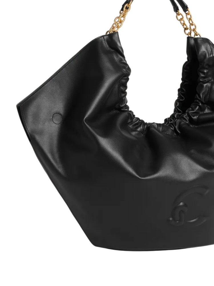 La linea Coccinelle Smash racchiude in sé l’intera attitude femminile e contemporanea del brand. La leggera pelle liscia viene arricciata dalla catena in metallo creando delle soffici pieghe che conferiscono morbidezza alla linea. Il logo C-Me arricchisce e personalizza questa borsa romantica e capiente. Per rendere la portabilità ancora più confortevole, ai manici in catena è stato aggiunto uno spallotto in pelle. Questo modello è realizzato in pellame liscio conciato con speciali grassi che lo rendono morbido al tatto. Nonostante l'aspetto setoso si tratta di un pellame resistente agli agenti atmosferici grazie all'utilizzo di resine che rendono la pelle leggermente impermeabile pur mantenendone l'aspetto naturale.