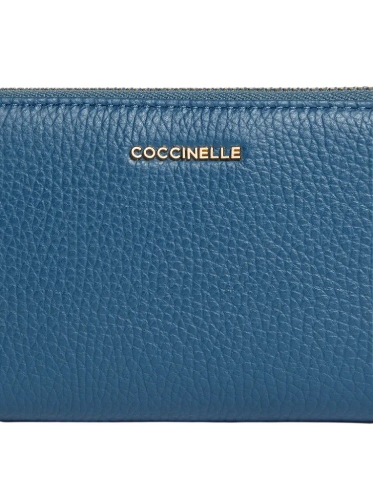 PORTAFOGLIO DONNA COCCINELLE IN PELLE METALLIC SOFT CERNIERA MW5 113201 B27 DEEP BLUE