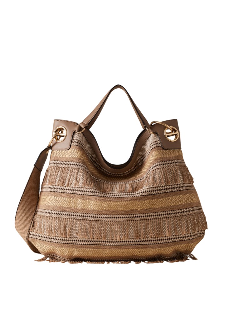 BORSA A MANO BORBONESE LONDON HOBO LARGE CON TRACOLLA IN TESSUTO JACQUARD E FRANGE/VITELLO 91010263 0212 A92 NATURALE